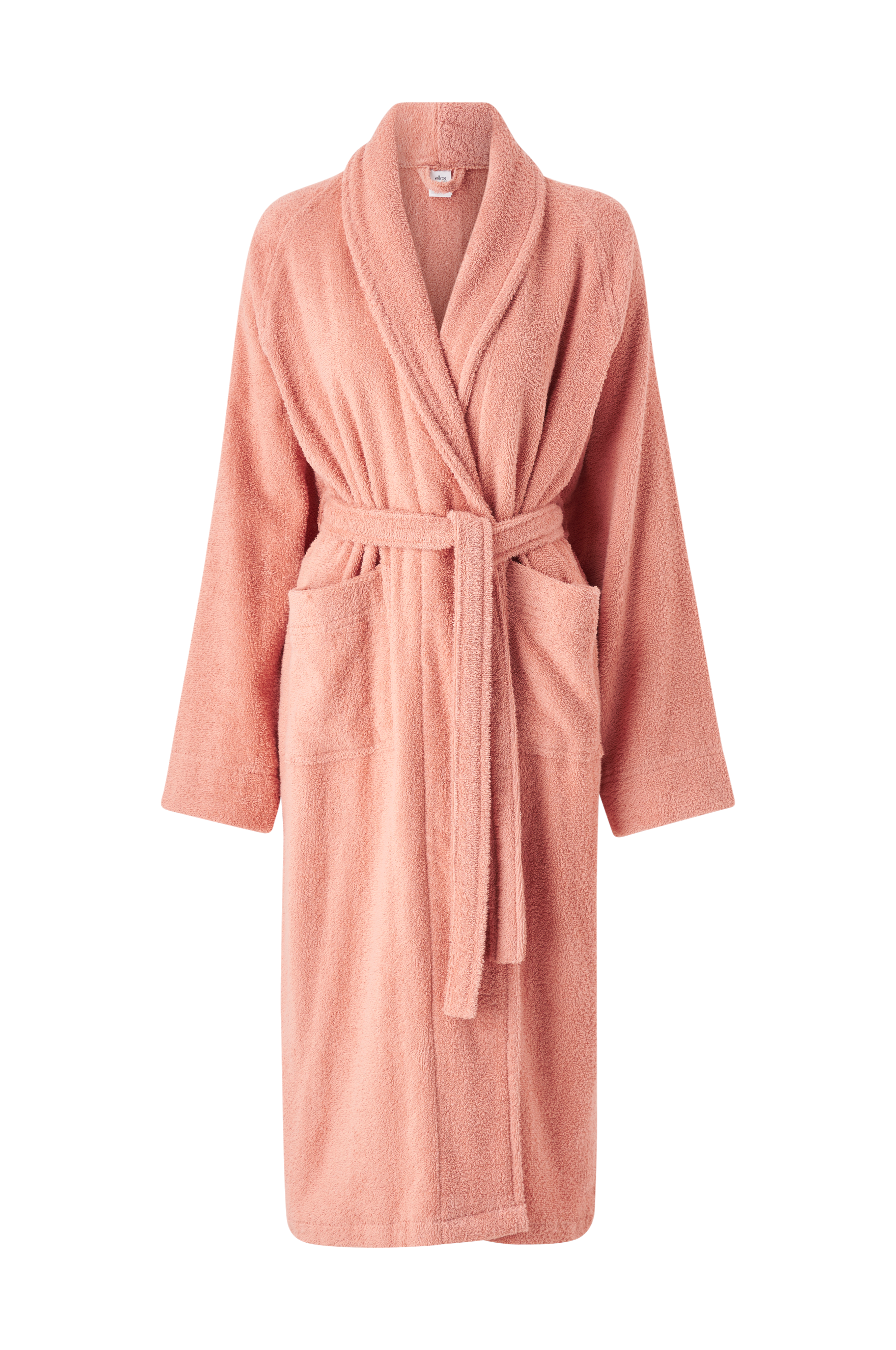 Badrock av 100% bomullsfrotté med krage, två fickor och knytskärp. Längd 120 cm i stl 38/40.