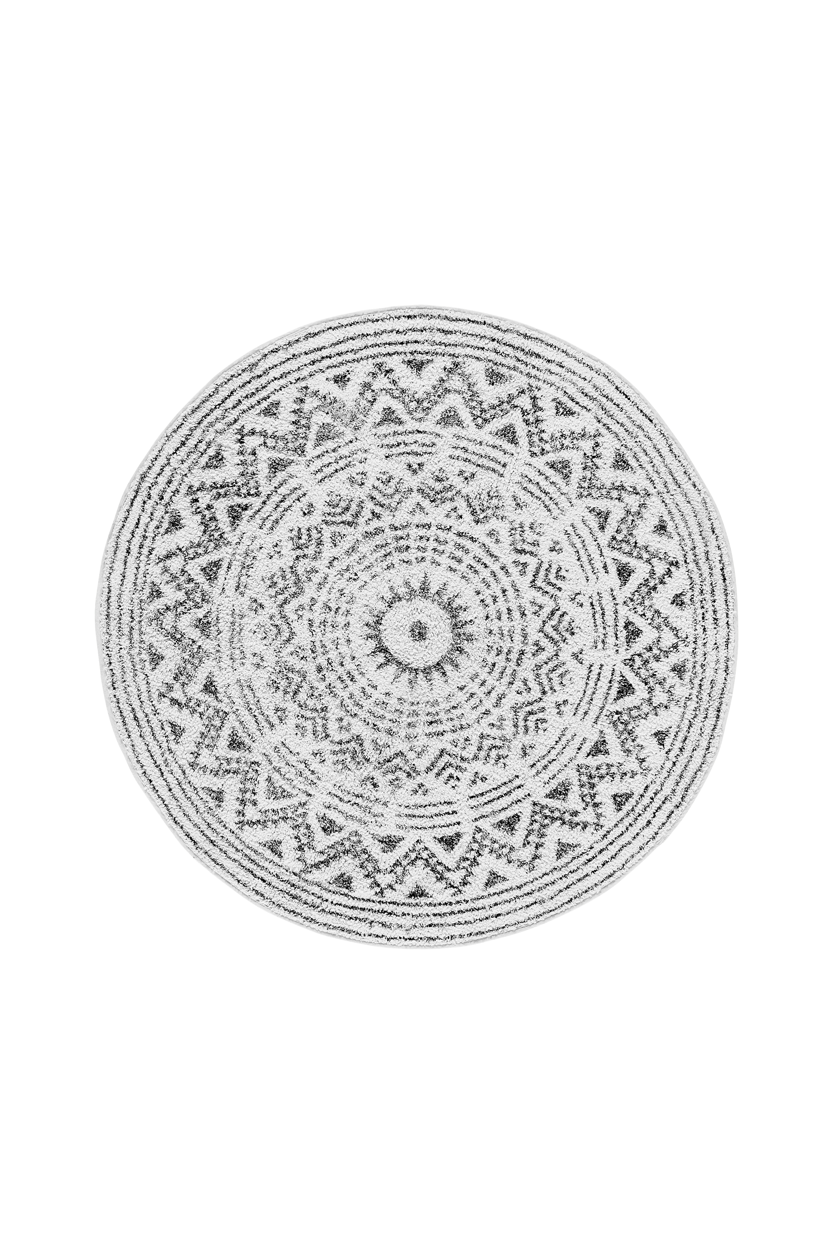 Tuftad, rund badrumsmatta i mjuk, fluffig bomull med känsla och look som en ryamatta. Tryckt mönster som varierar i kontrast och tydlighet beroende på hur luggen i mattan lägger sig. Ø 80 cm.