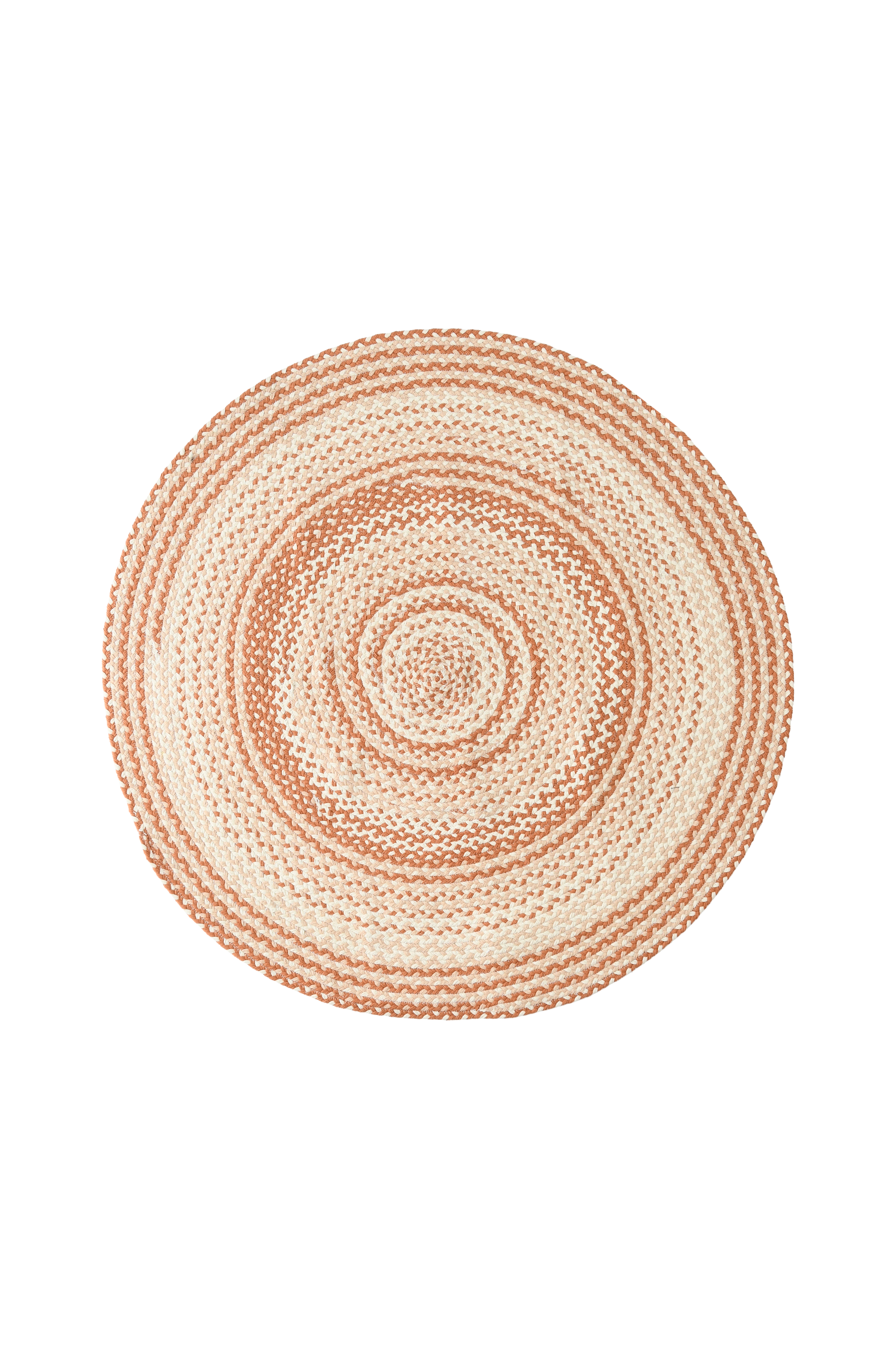 Rund matta av bomull i härliga färger. Flätad och handsydd. Diameter 120 cm.