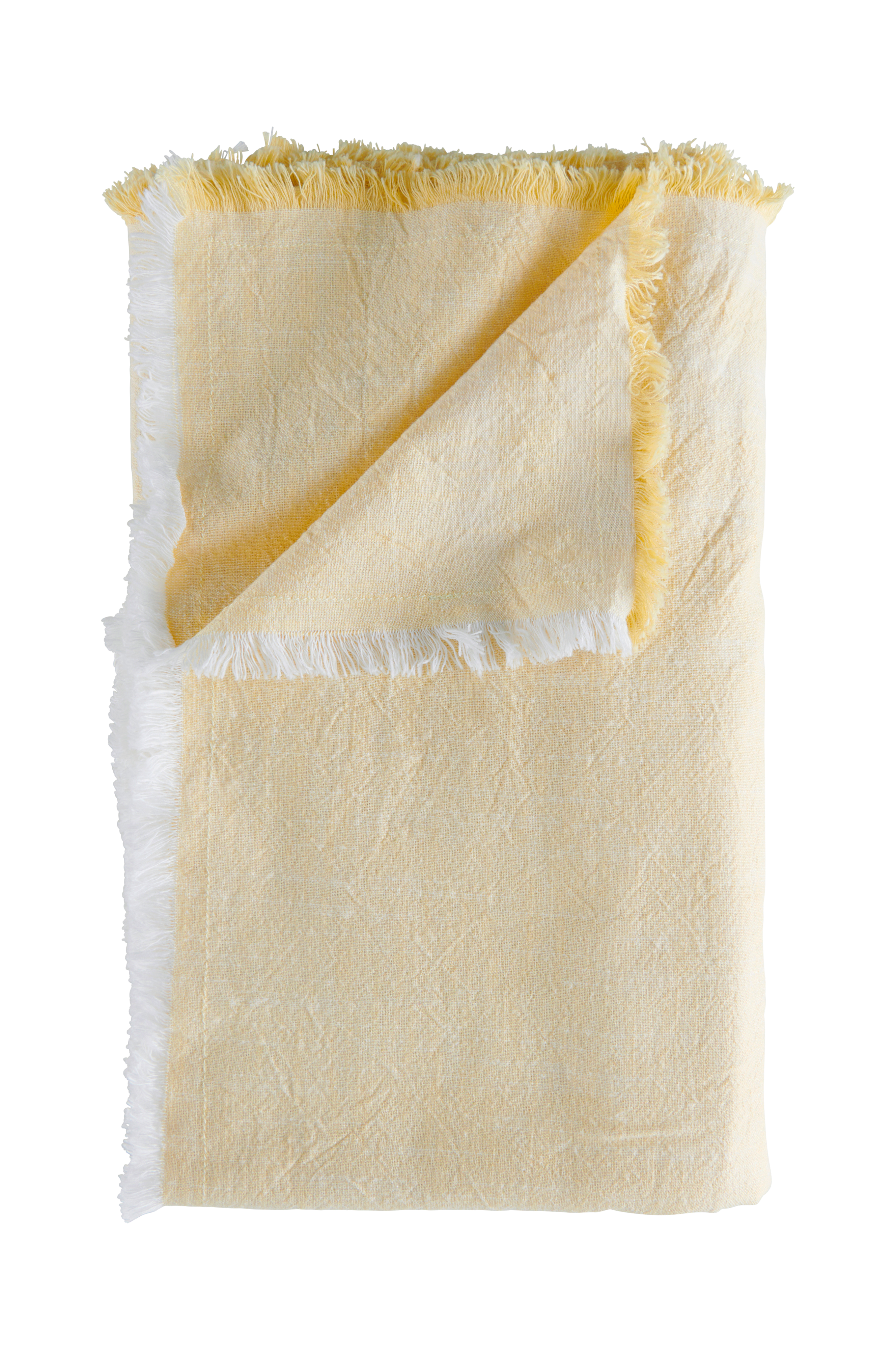 Duk i vävd, ekologisk bomull med melerad färg och slubeffekt, vilket innebär att tyget har en lätt struktur. Fransar på 4 sidor.