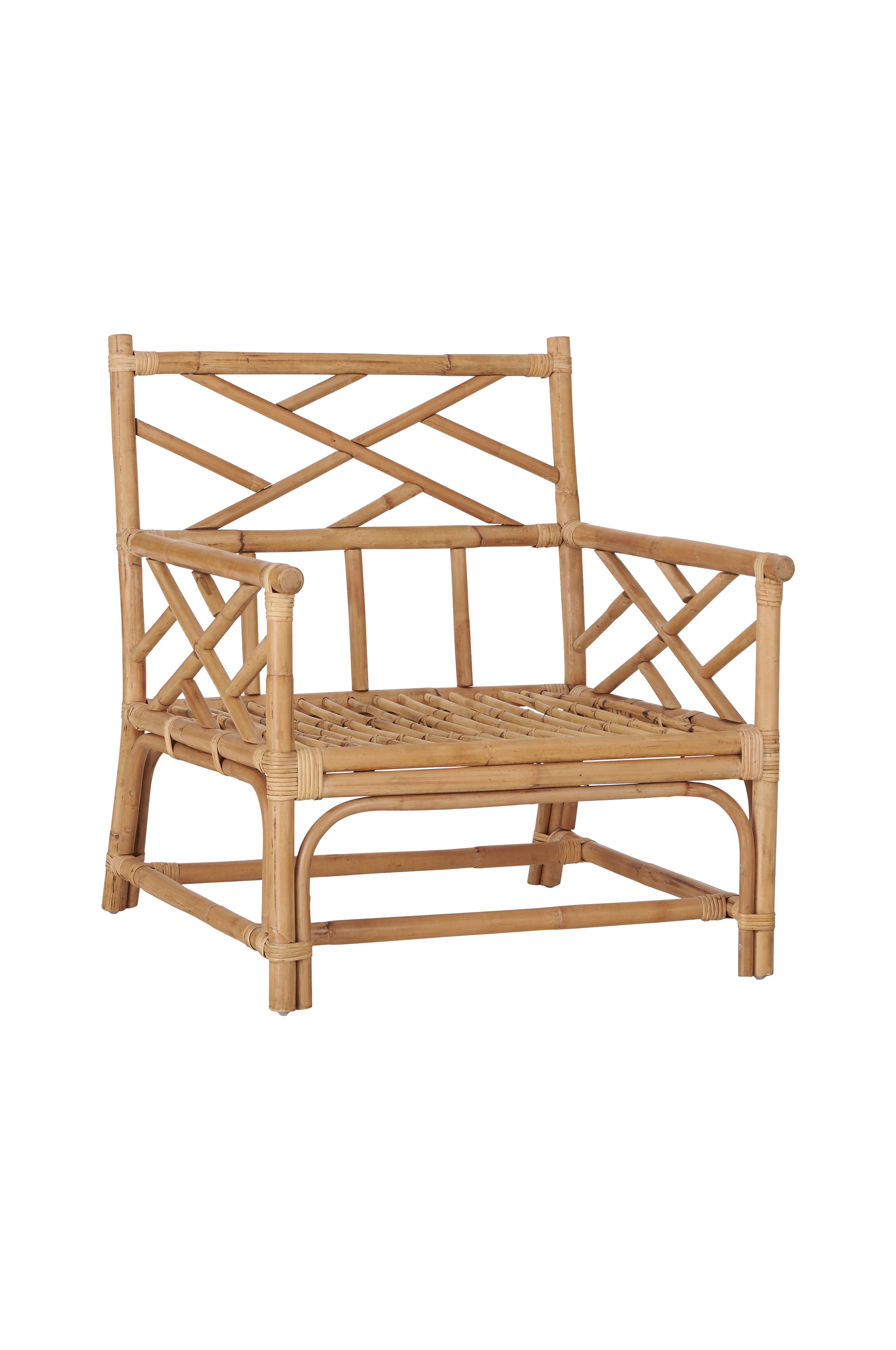 Modern fåtölj i rotting med ett dekorativt mönster på rygg och armstöd. Mått: Bredd 70 cm, höjd 81 cm, djup 70 cm. Sitthöjd 34 cm, sittdjup 59 cm, sittbredd 63 cm. Höjd från golv till armstöd 55 cm. Max vikt belastning 100 kg.