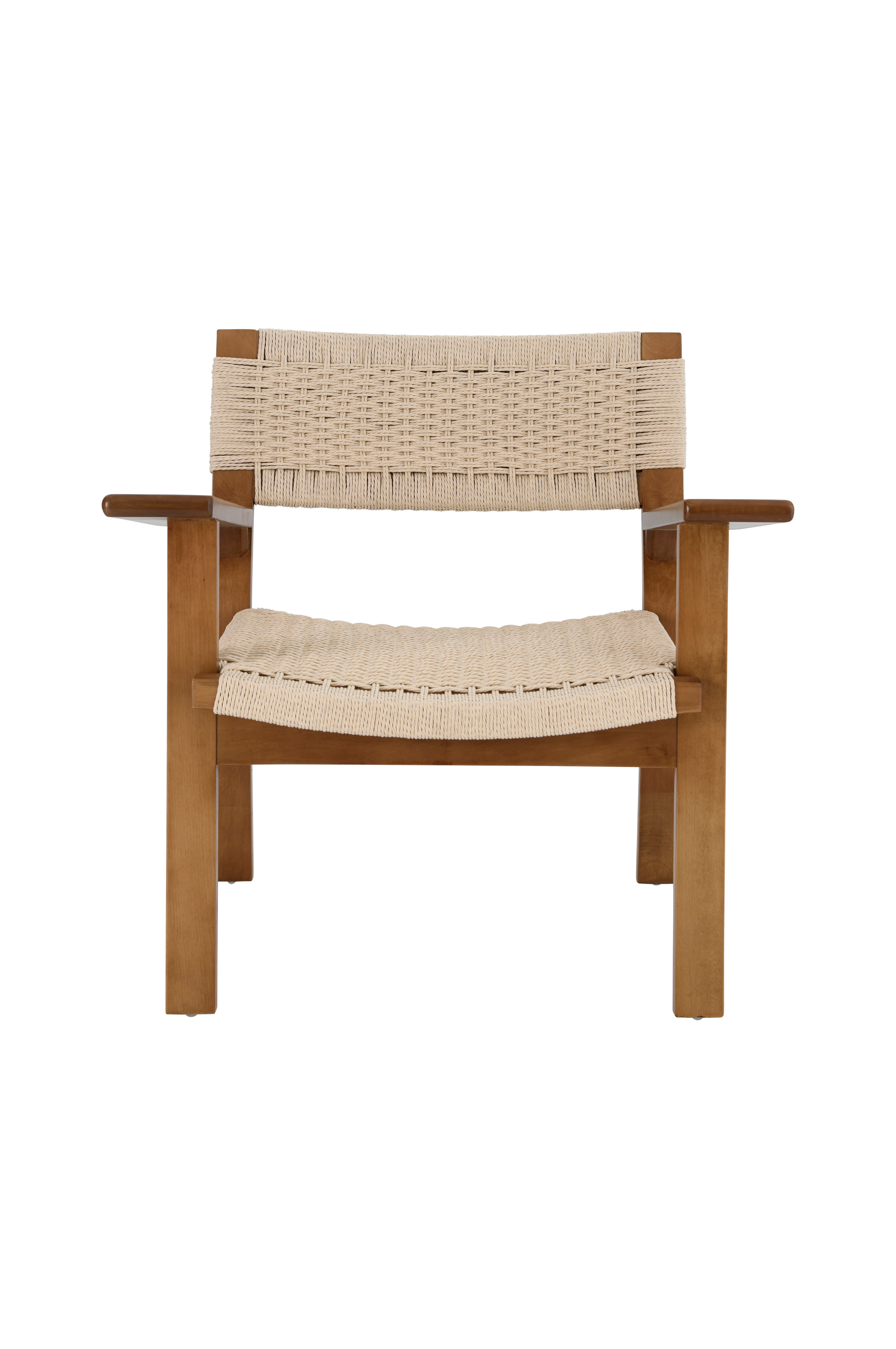 Fåtölj i björk med sits och rygg av dubbelt flätat och vaxat pappersrep. Levereras monterad.