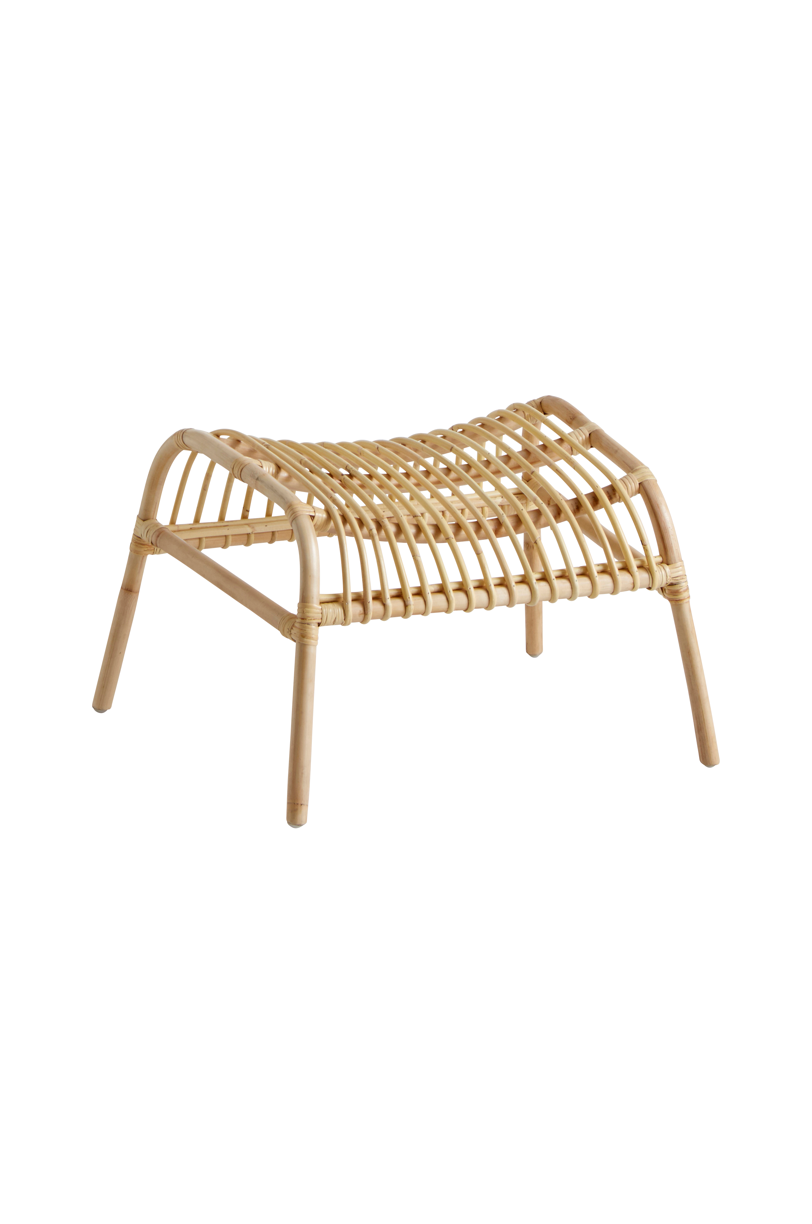 Fotpall av rotting i sluttande modell som ger bra komfort. Fotpallen bör placeras under tak eftersom rotting är känsligt för både väta och uttorkning.