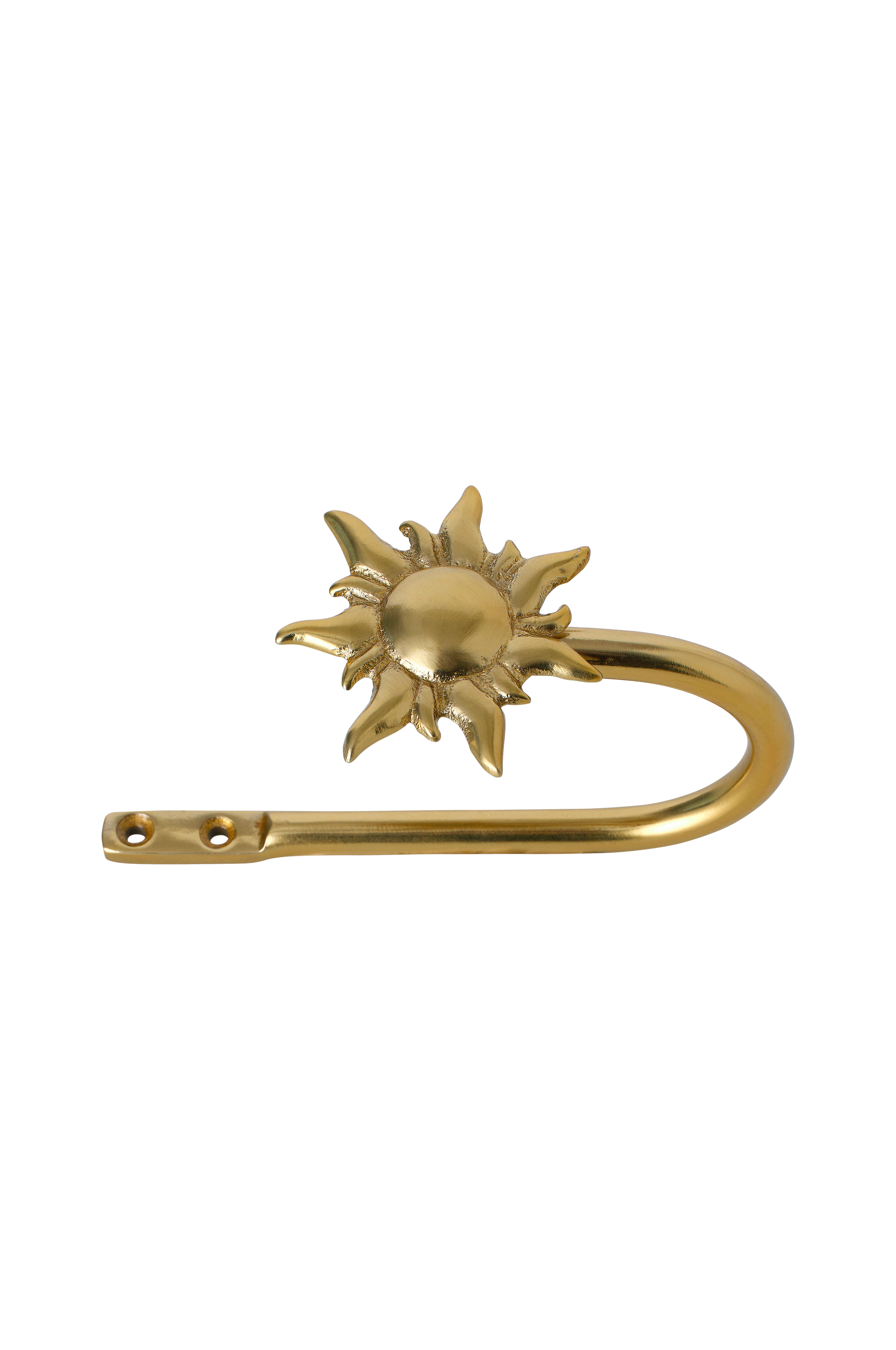 • Gardinhållare i mässingfärgad metall med solformad dekoration