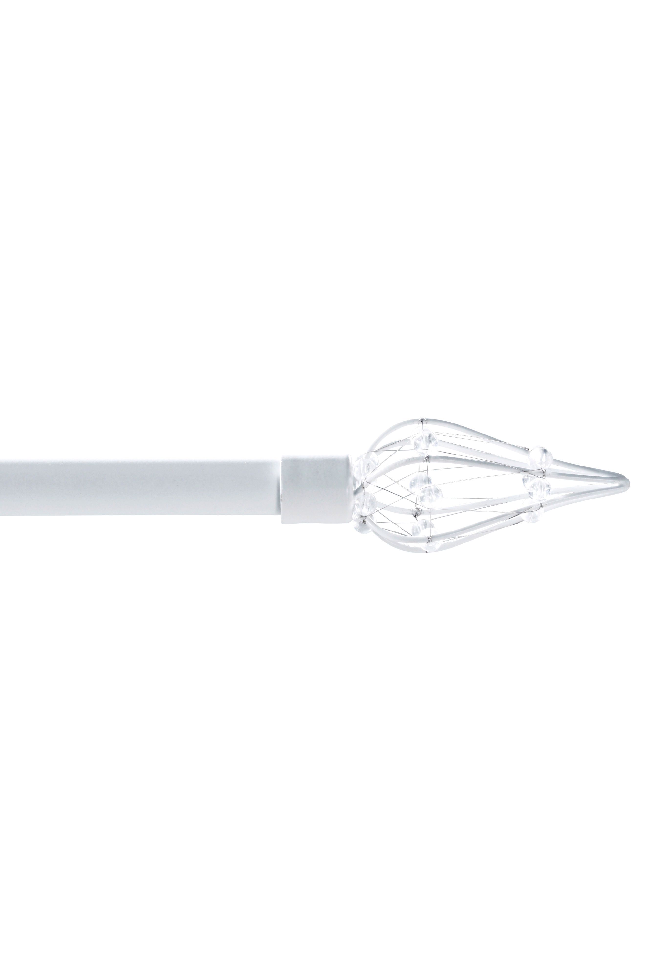 Gardinstångset av metall som består av 3 st stänger. Justerbar längd 67-190 cm. 2 st med diameter 16 mm, 1 st med diameter 19 mm. 2 st väggfästen.Väggavstånd 7 cm. Ändknoppar i metall och pärlor av plast (11 cm). Skruvar och plastplugg ingår.