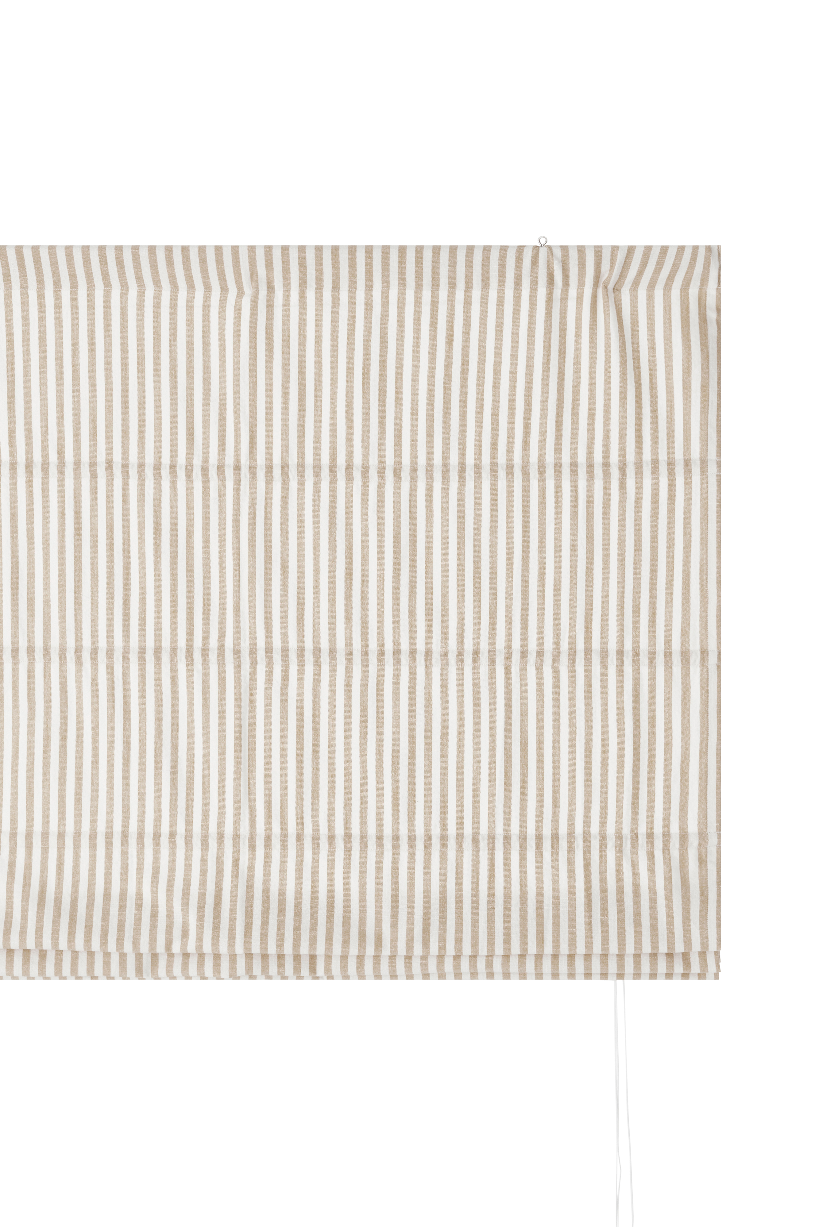 Gardinen är i ett bra bomullstyg, och den ser i och för sig fin ut när den hänger i fönstret. Upphängningen fungerar, och även funktionen för att höja och sänka gardine…