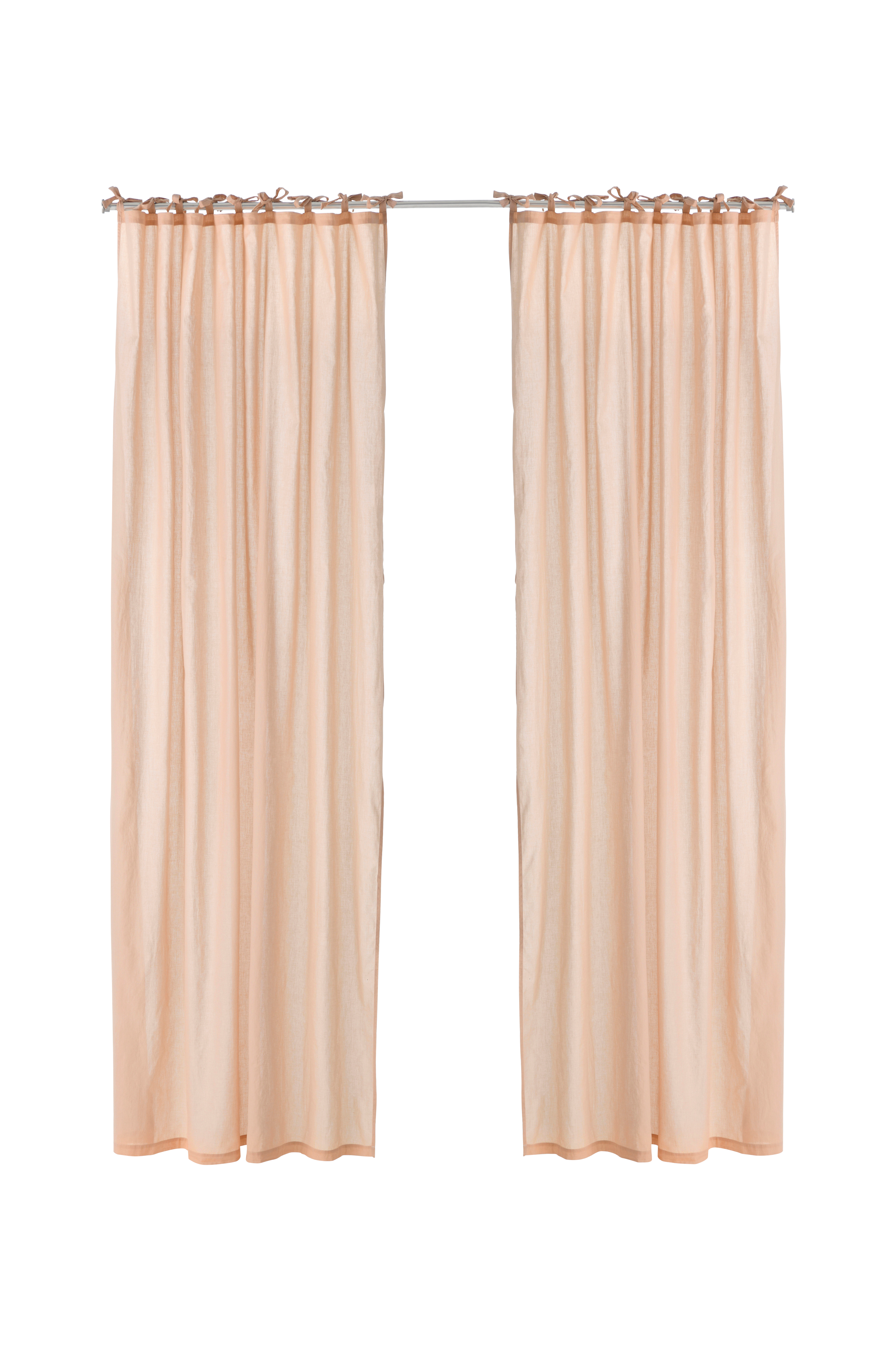 Två knytbandslängder i mjuk, tvättad bomullsvoile. Knytbandslängder ger ett romantiskt intryck, med band upptill som knyts runt gardinstången. Du väljer själv om banden ska hänga ner eller om du vill knyta rosetter. Bredd 145 cm. Gardinerna finns i två längder: 220 och 250 cm.