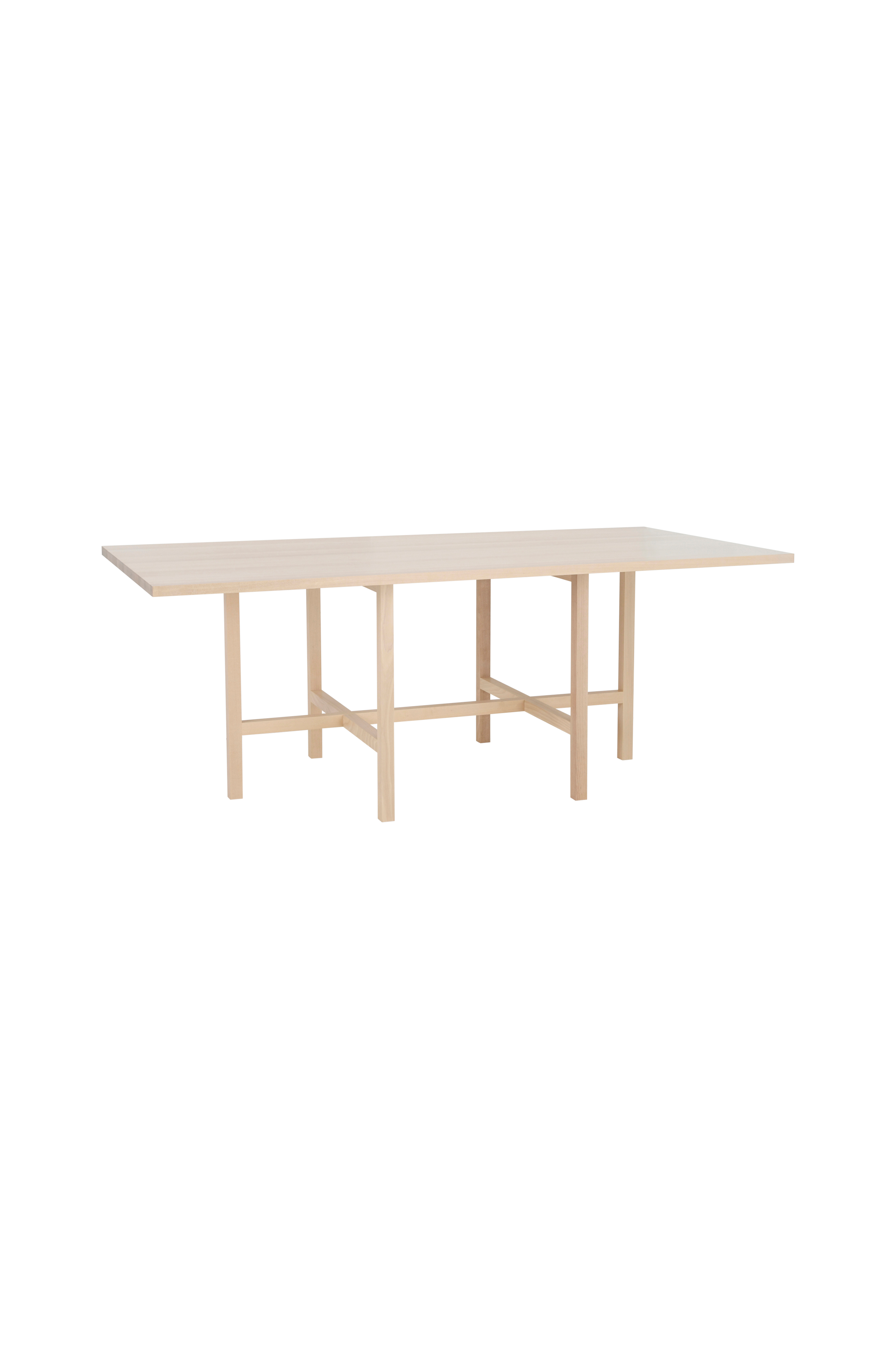 Svensktillverkat matbord av björk med brännstämpel på undersidan av bordet.