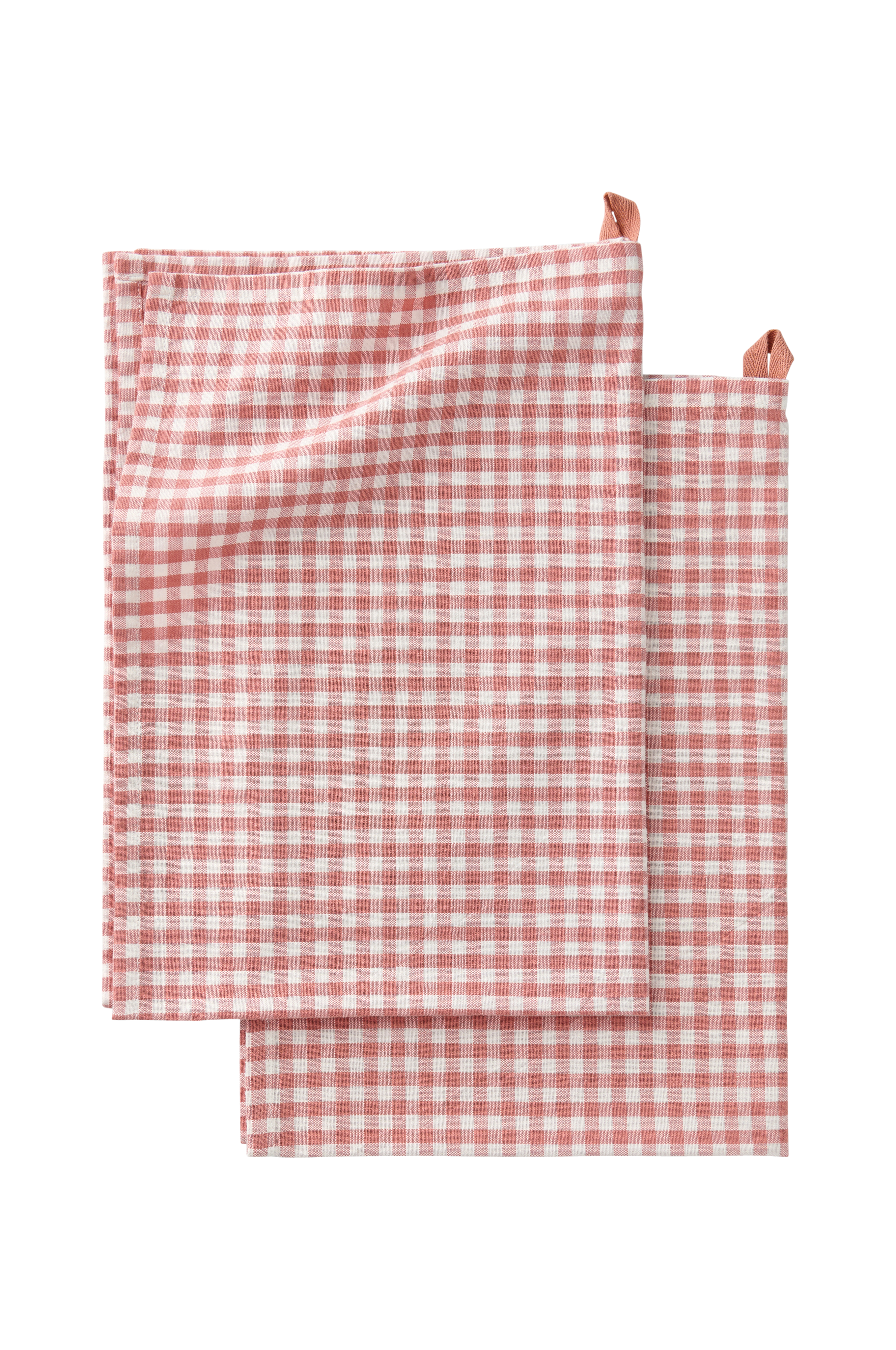 • Två kökshanddukar i bomull med garnfärgade rutor