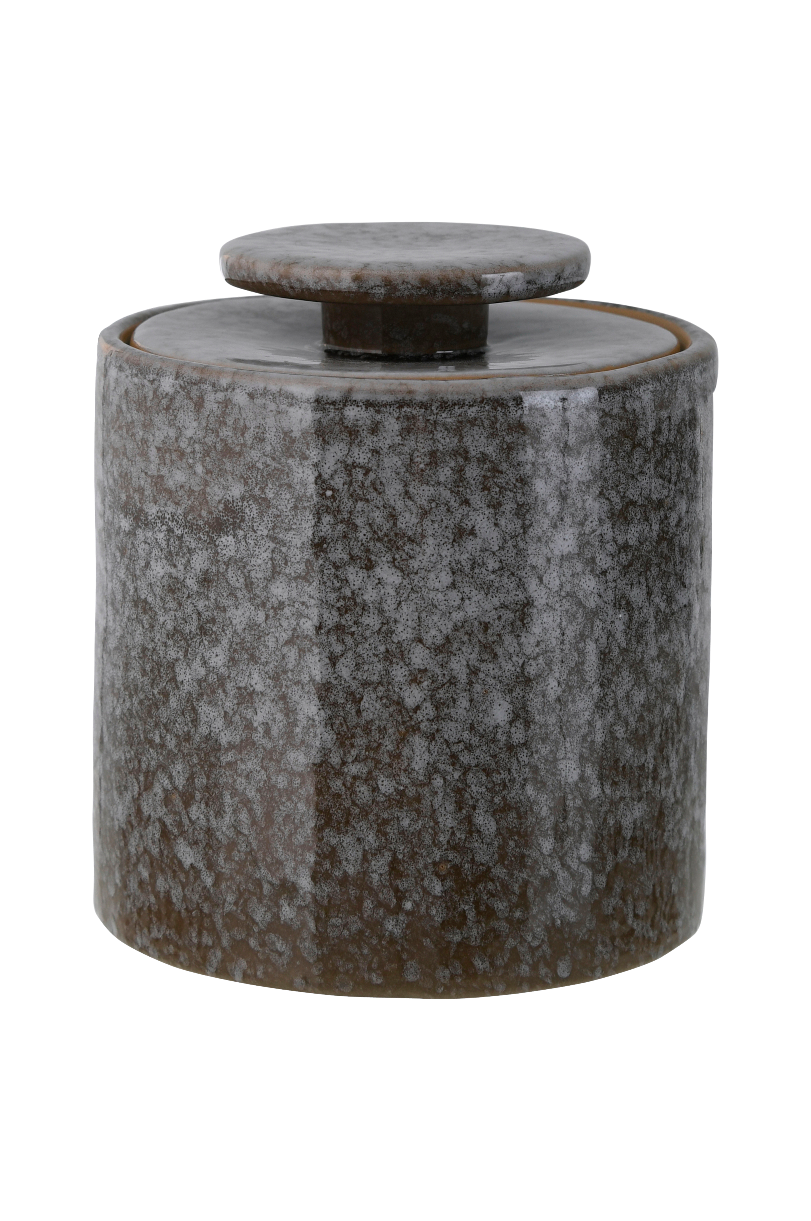 Kruka förvaringsburk av glaserad keramik med lock. Höjd inkl. lock 12,5 cm.