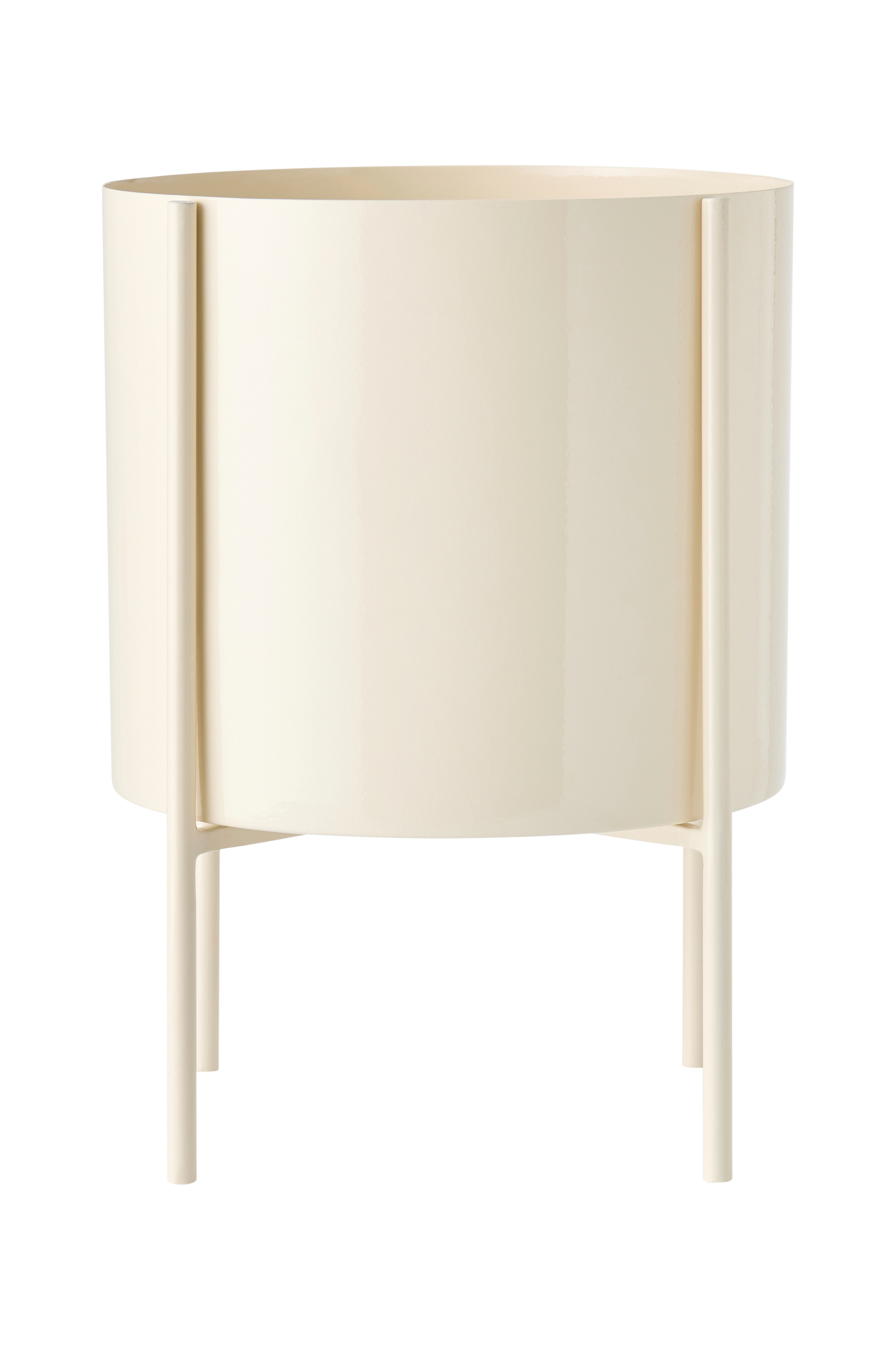 Kruka av järn med stativ på 4 ben. Stativet är vändbart och krukan kan placeras på båda sidorna av stativet för olika höjder. Krukans mått: Höjd 22 cm, Ø 25 cm. Placerad i stativet blir den högre höjden 45 cm och den lägre höjden 35 cm.