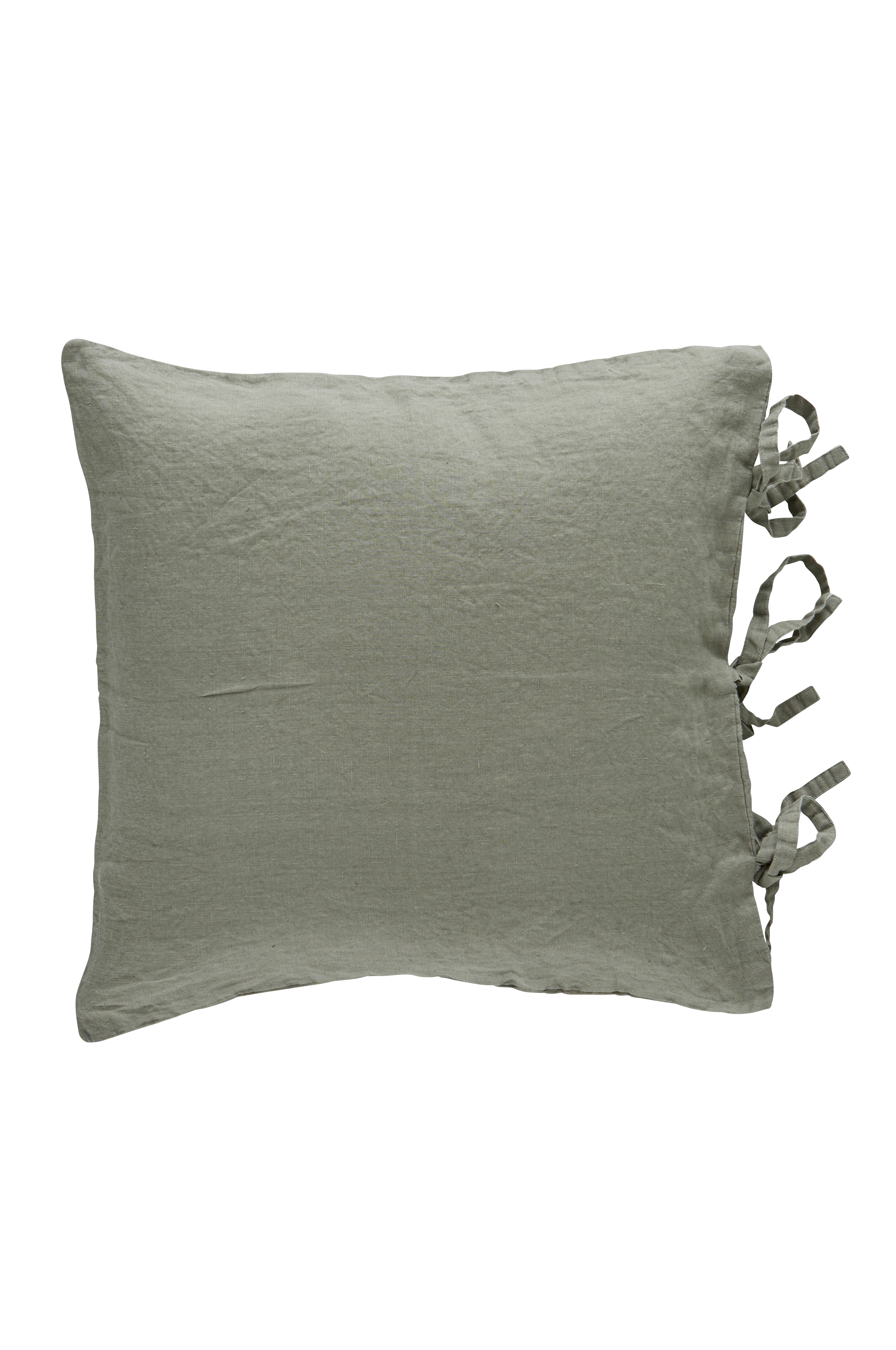 Kuddfodral i mjuk tvättad linnekvalitet med vintagelook. Av franskt lin. Tre par knytband i ena kanten. Stl 50x50 cm.