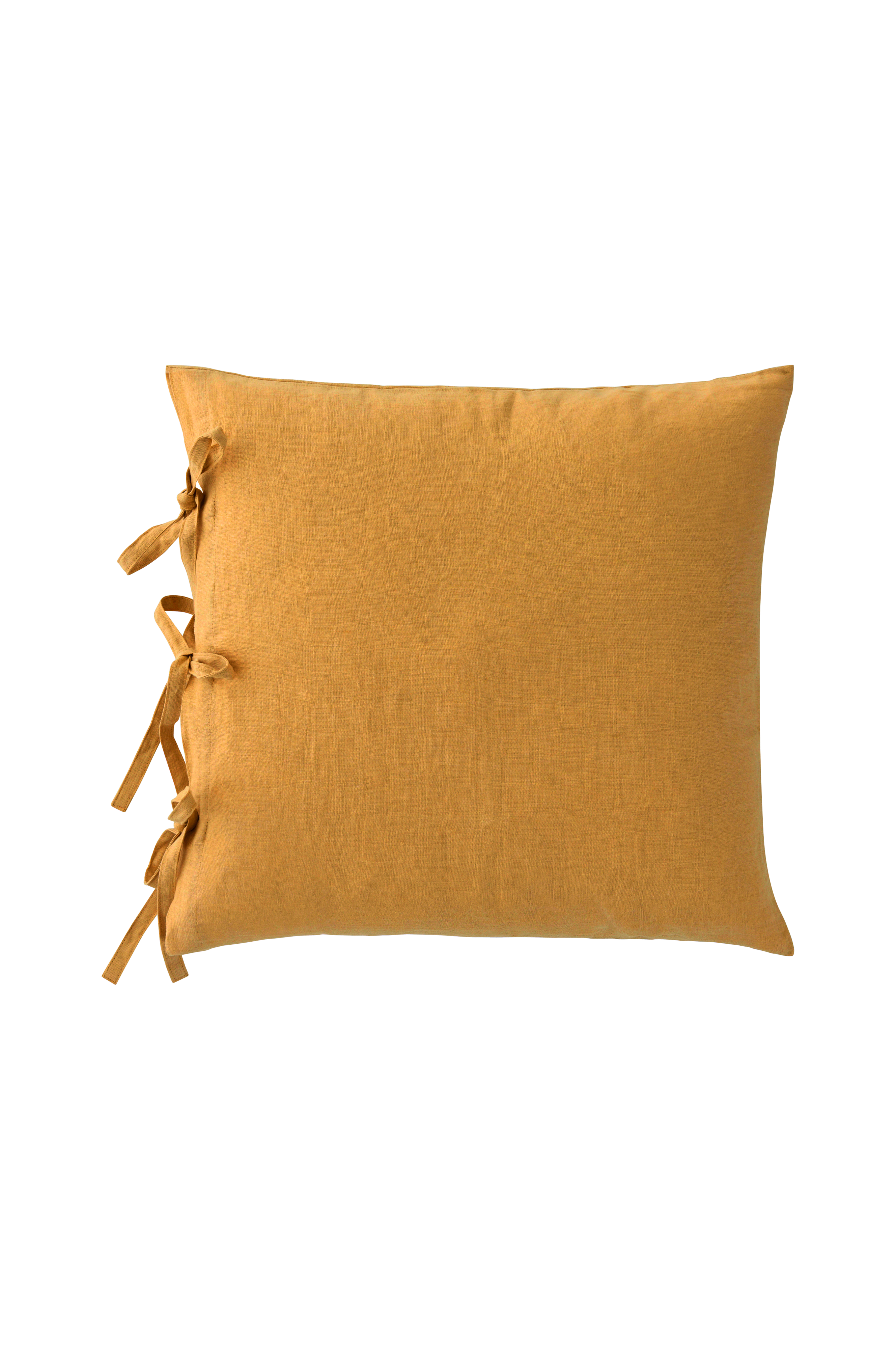Kuddfodral i mjuk tvättad linnekvalitet med vintagelook. Av franskt lin. Tre par knytband i ena kanten. Stl 50x50 cm.