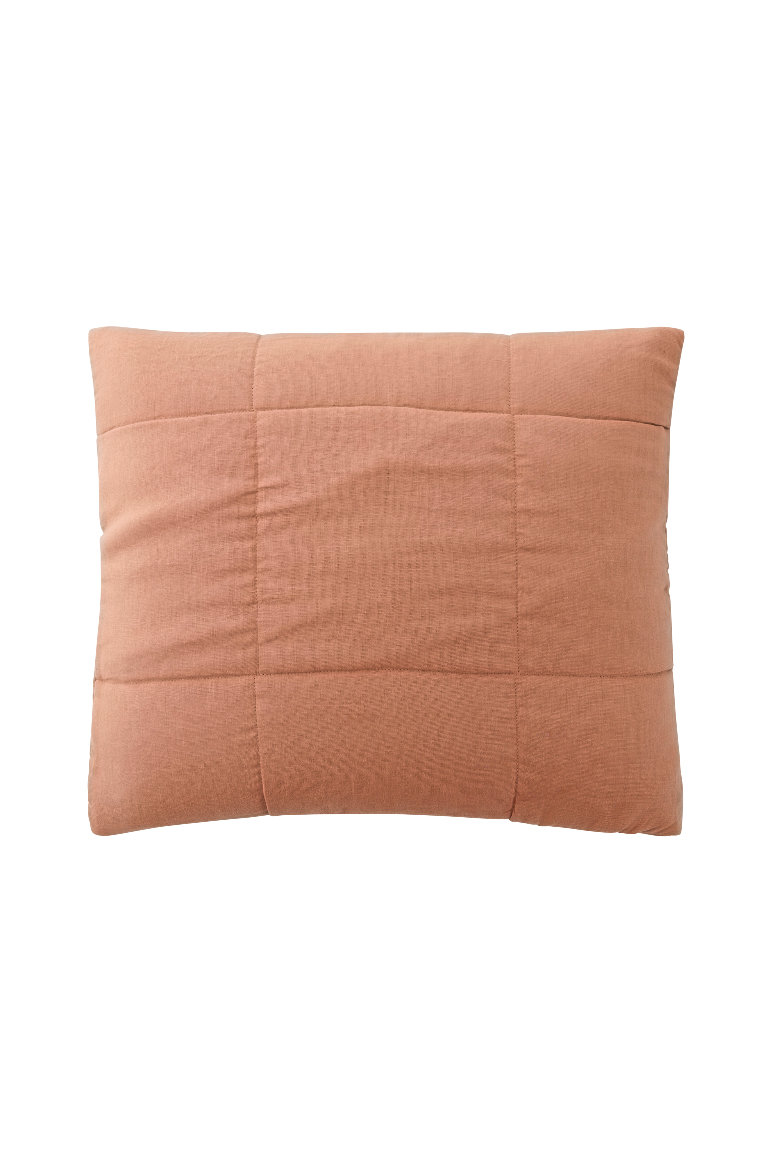 Lätt, rutquiltat kuddfodral med framsida i tvättat lin. Baksida i bomull. Dragkedja. Stl 50x60 cm.