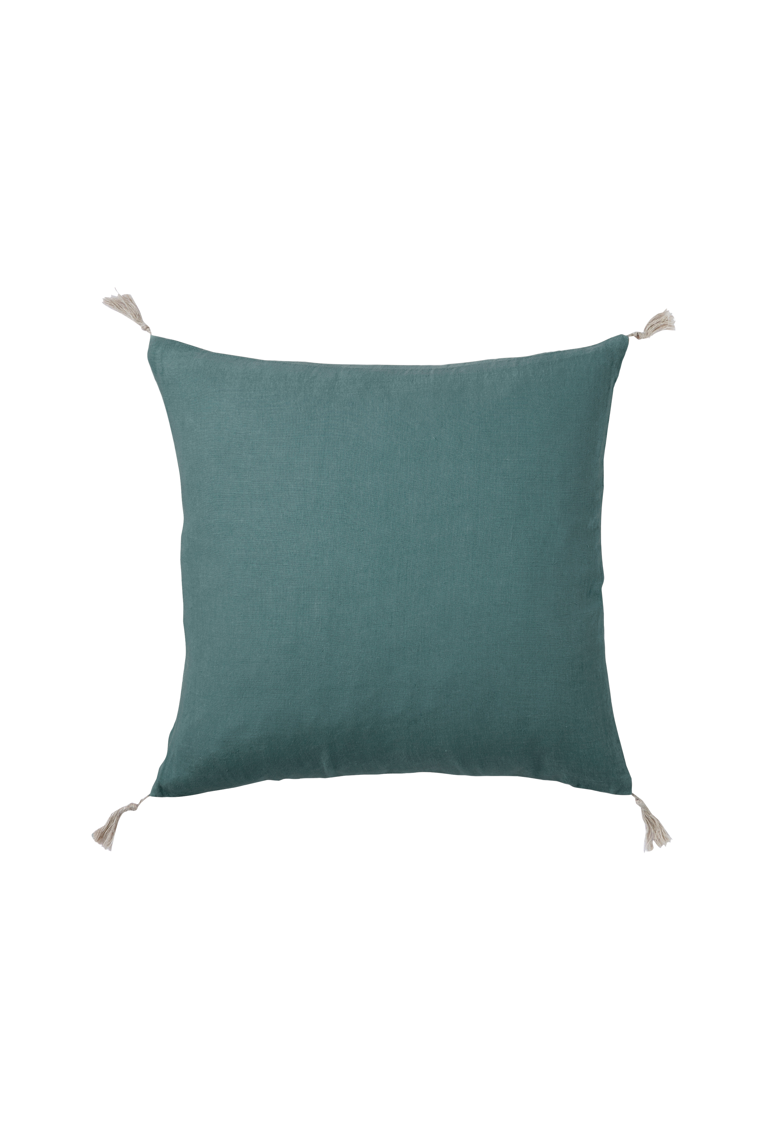 Kuddfodral i mjuk tvättad kvalitet av franskt lin med vintagelook och dekorativa, handsydda stygn. Tofsar av linnegarn i alla hörn. Dold dragkedja i botten. Stl 50x50 cm.