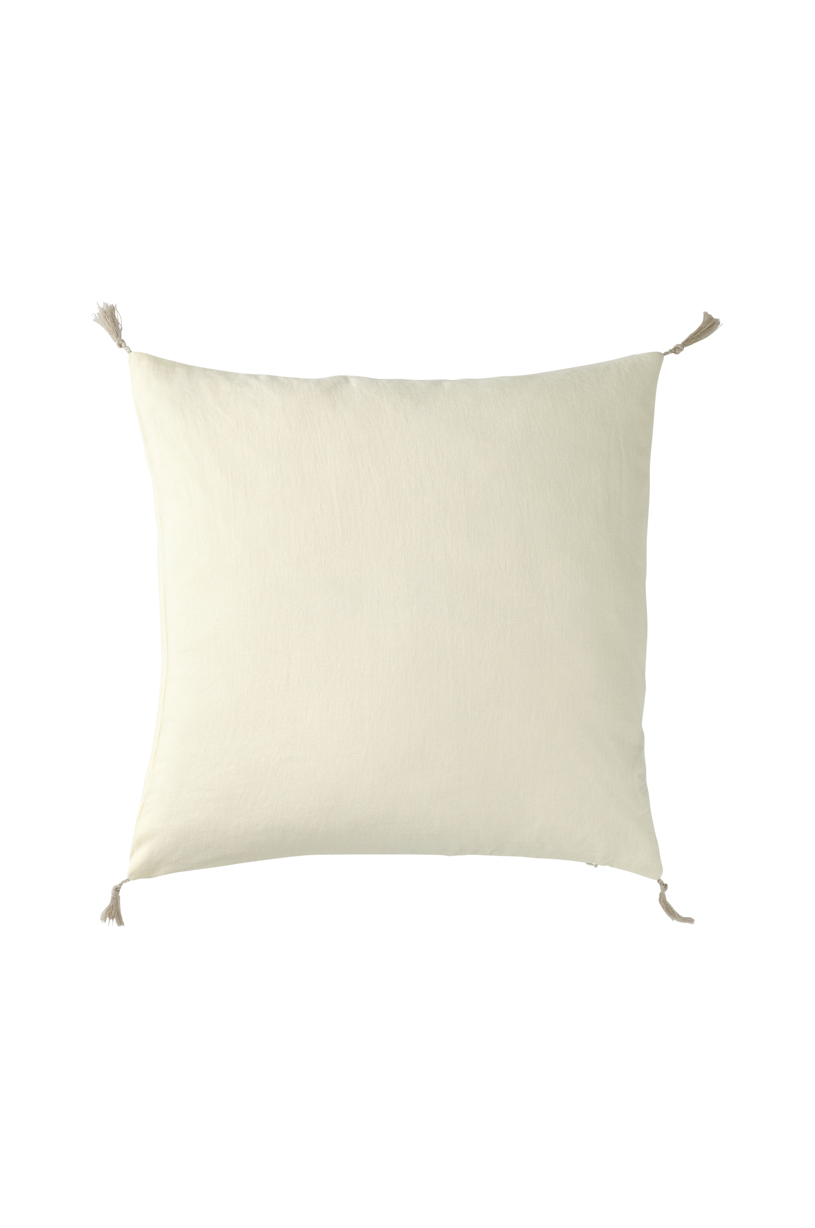 Kuddfodral i mjuk tvättad kvalitet av franskt lin med vintagelook och dekorativa, handsydda stygn. Tofsar av linnegarn i alla hörn. Dold dragkedja i botten. Stl 50x50 cm.