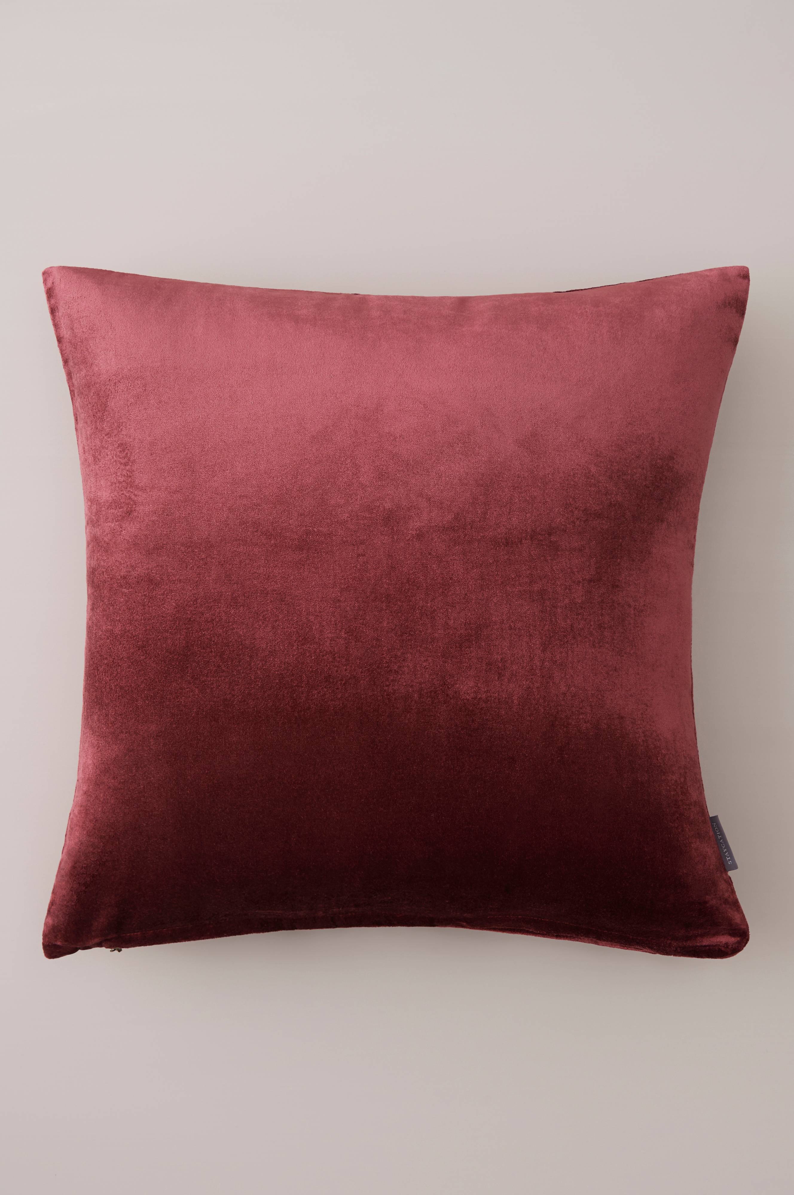 Kuddfodral i mjuk, tvättad sammet av viskos. Metalldragkedja i botten med antikguldfärg. Stl 50x50 cm.