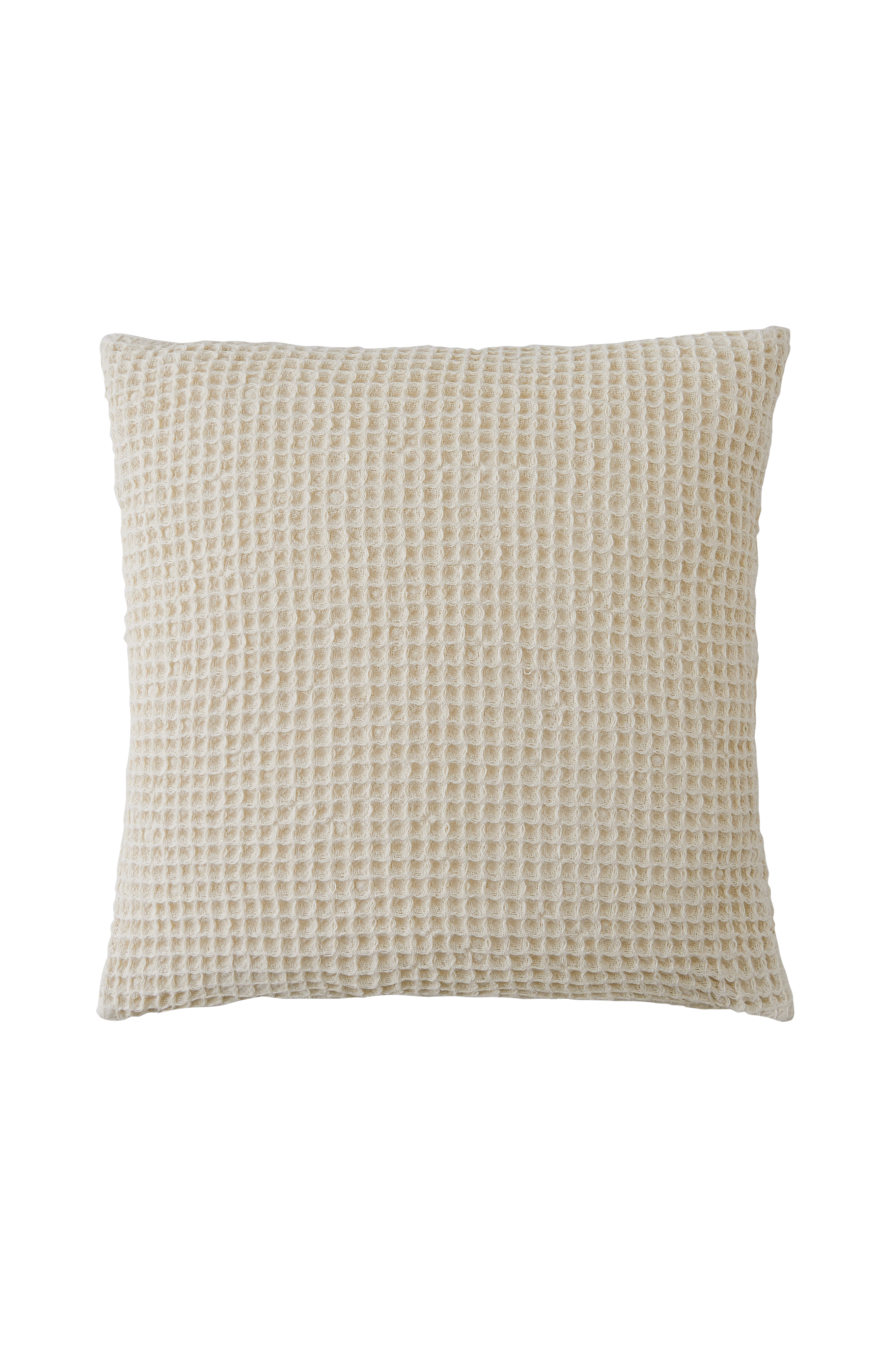 Kuddfodral i tvättad bomull med kraftigt våffelmönster. Dragkedja. Stl 50x50 cm.