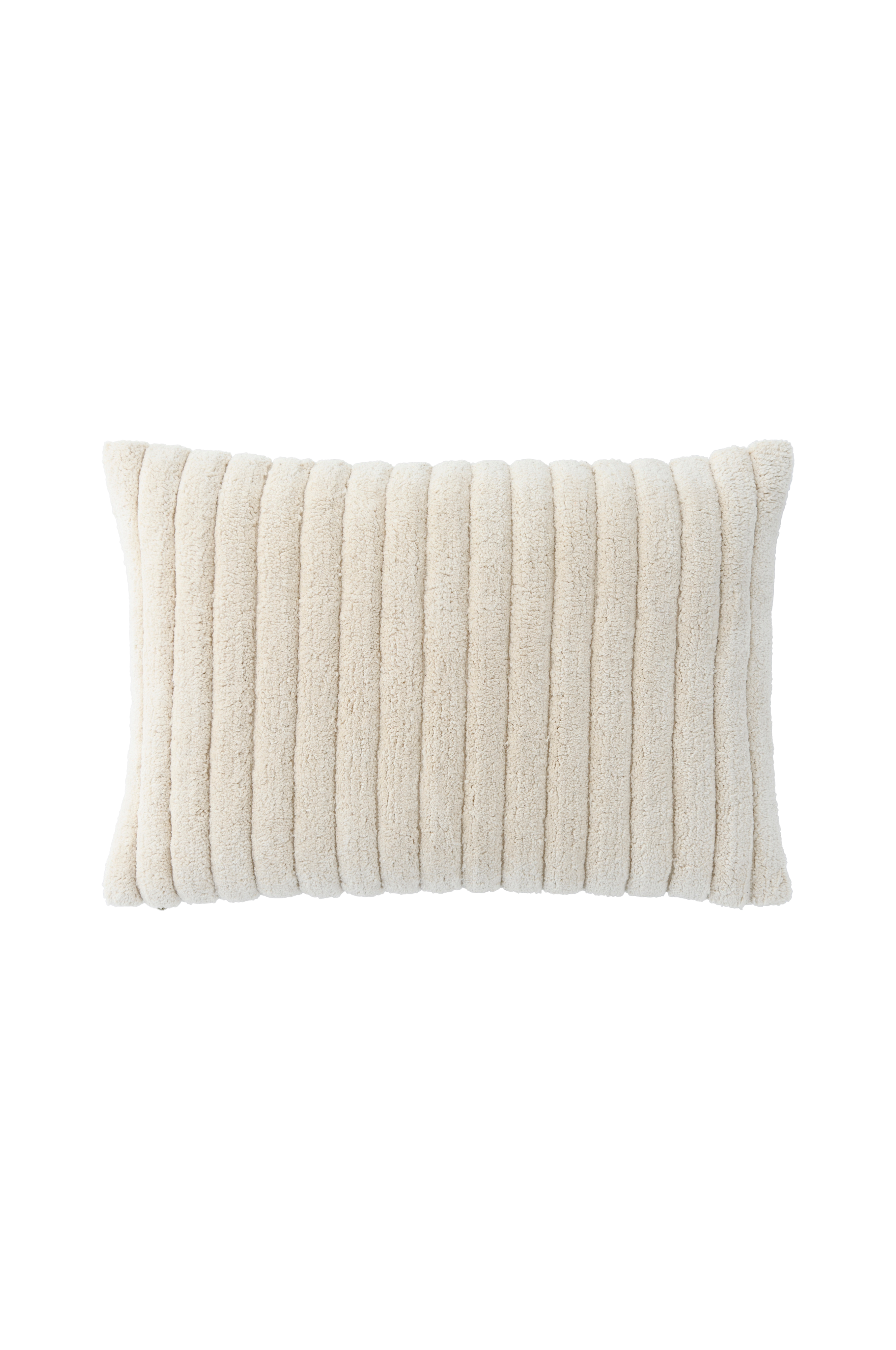 Kuddfodral med framsida i grov bomull med tuftat randmönster. Baksida i halvpanama. Metalldragkedja i botten.