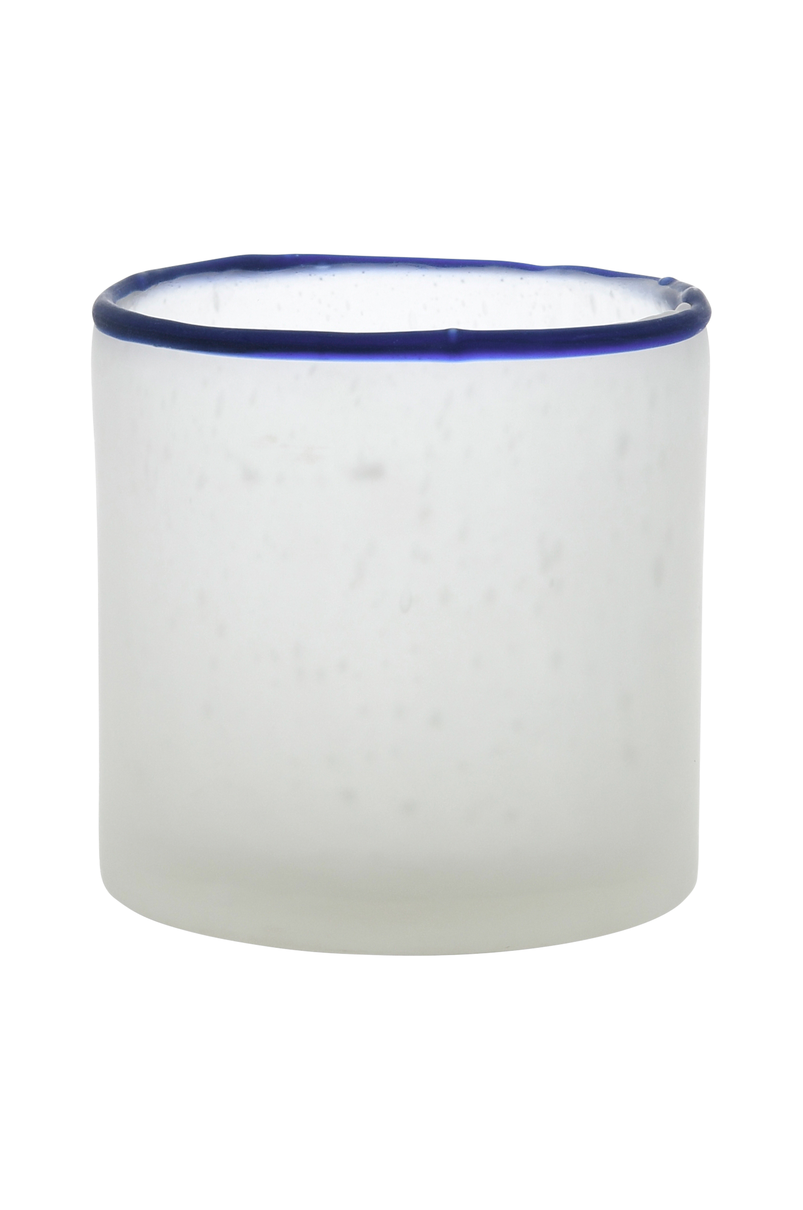 Handgjord ljuslykta i glas med frostad finish.