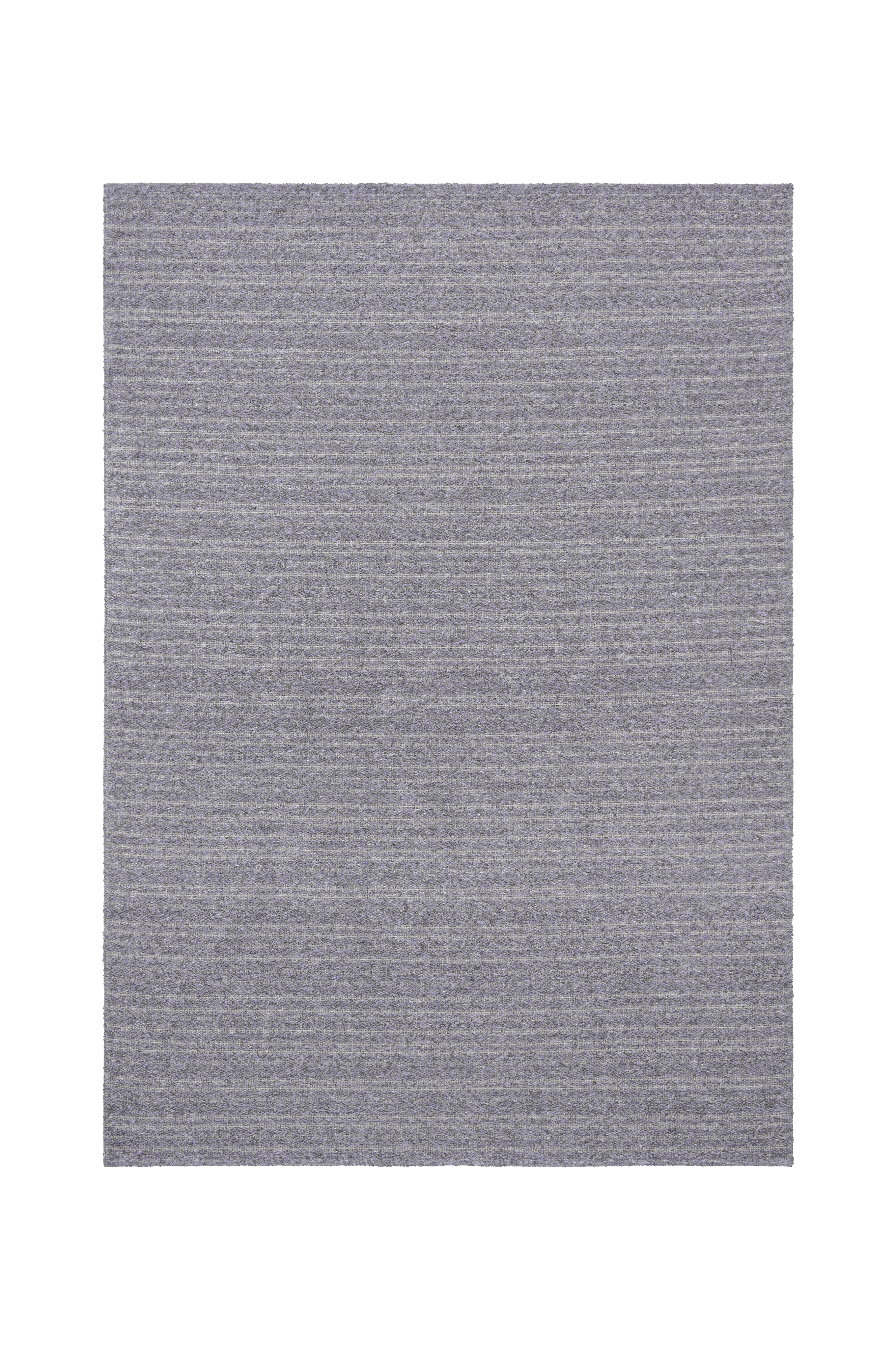 Vävd matta i boucléliknande garn med randeffekt. Tillverkad i Sverige.