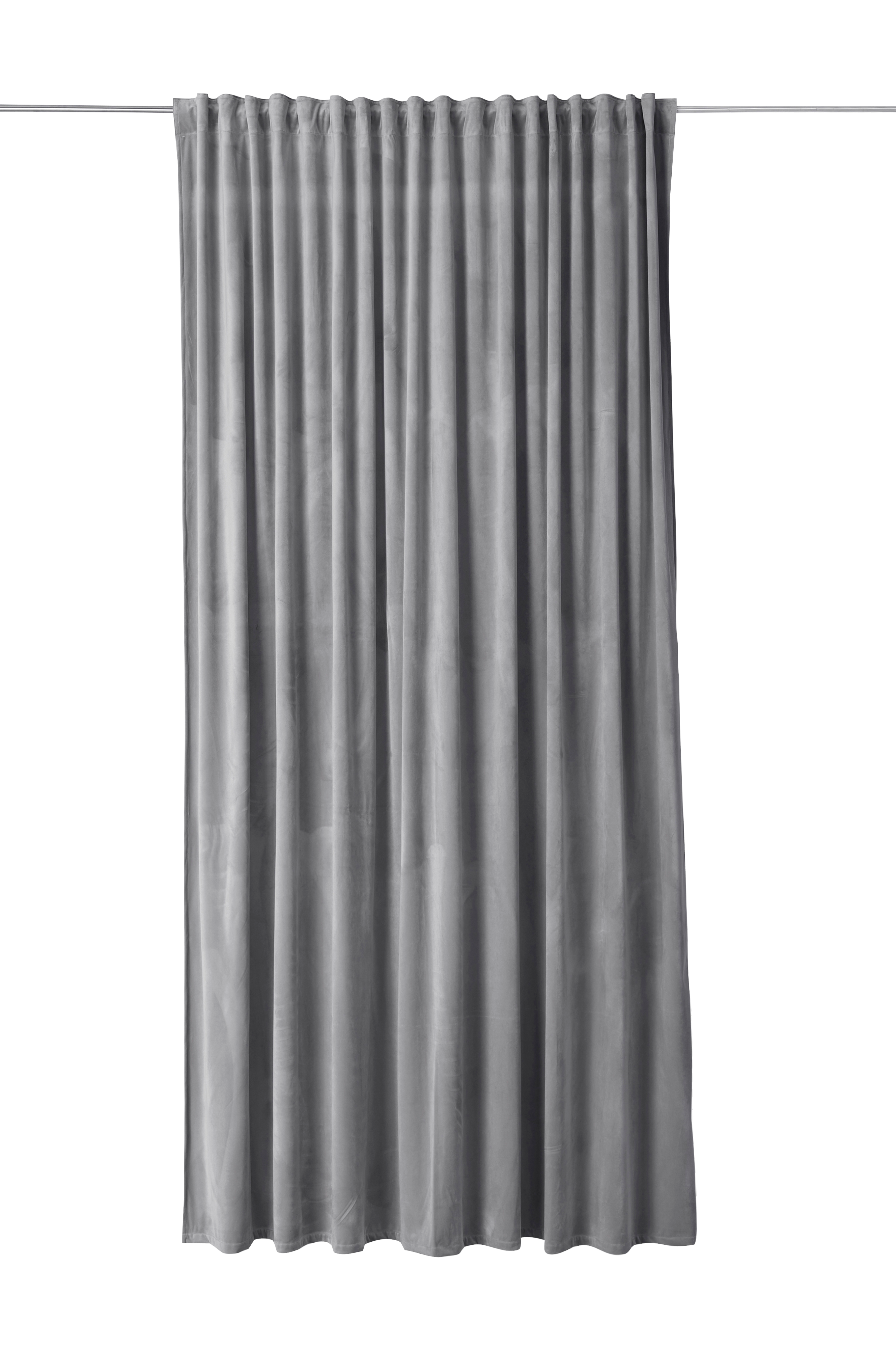 Mörkläggningsgardin av mjuk sammet med ett vävt mellanlager med invävda svarta trådar som gör att gardinen avskärmar ljuset. Med multiband som gör att du antingen kan hänga gardinen direkt på en gardinstång genom de gömda hällorna eller använda ringar och nålkrokar (ej fingerkrokar). Snören i rynkbandet gör att du lätt kan skapa jämna, fina veck. Bredd 270 cm. Längd 300 cm. Säljs i 1-pack.