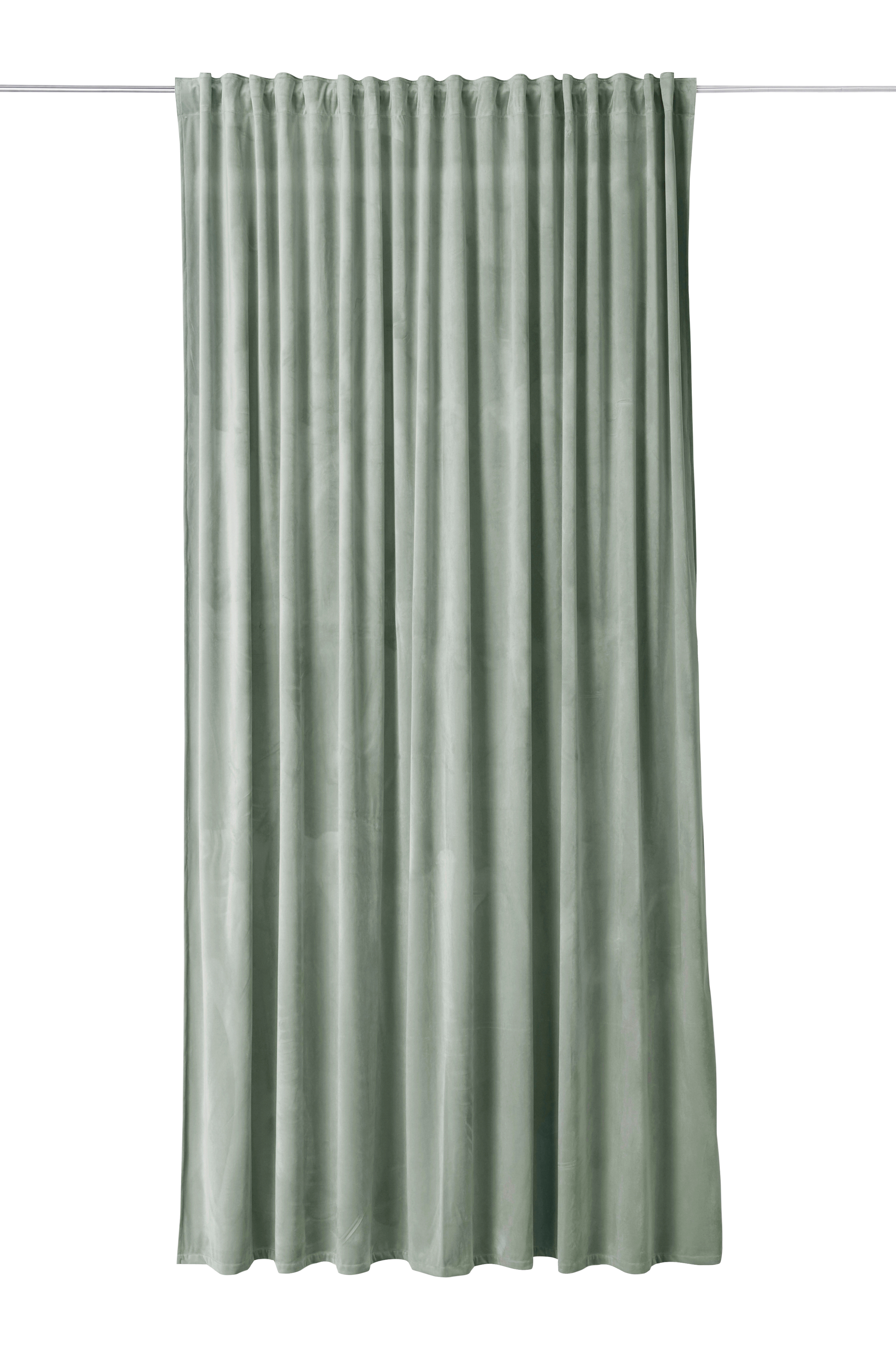 Mörkläggningsgardin av mjuk sammet med ett vävt mellanlager med invävda svarta trådar som gör att gardinen avskärmar ljuset. Med multiband som gör att du antingen kan hänga gardinen direkt på en gardinstång genom de gömda hällorna eller använda ringar och nålkrokar (ej fingerkrokar). Snören i rynkbandet gör att du lätt kan skapa jämna, fina veck. Bredd 270 cm. Längd 300 cm. Säljs i 1-pack.