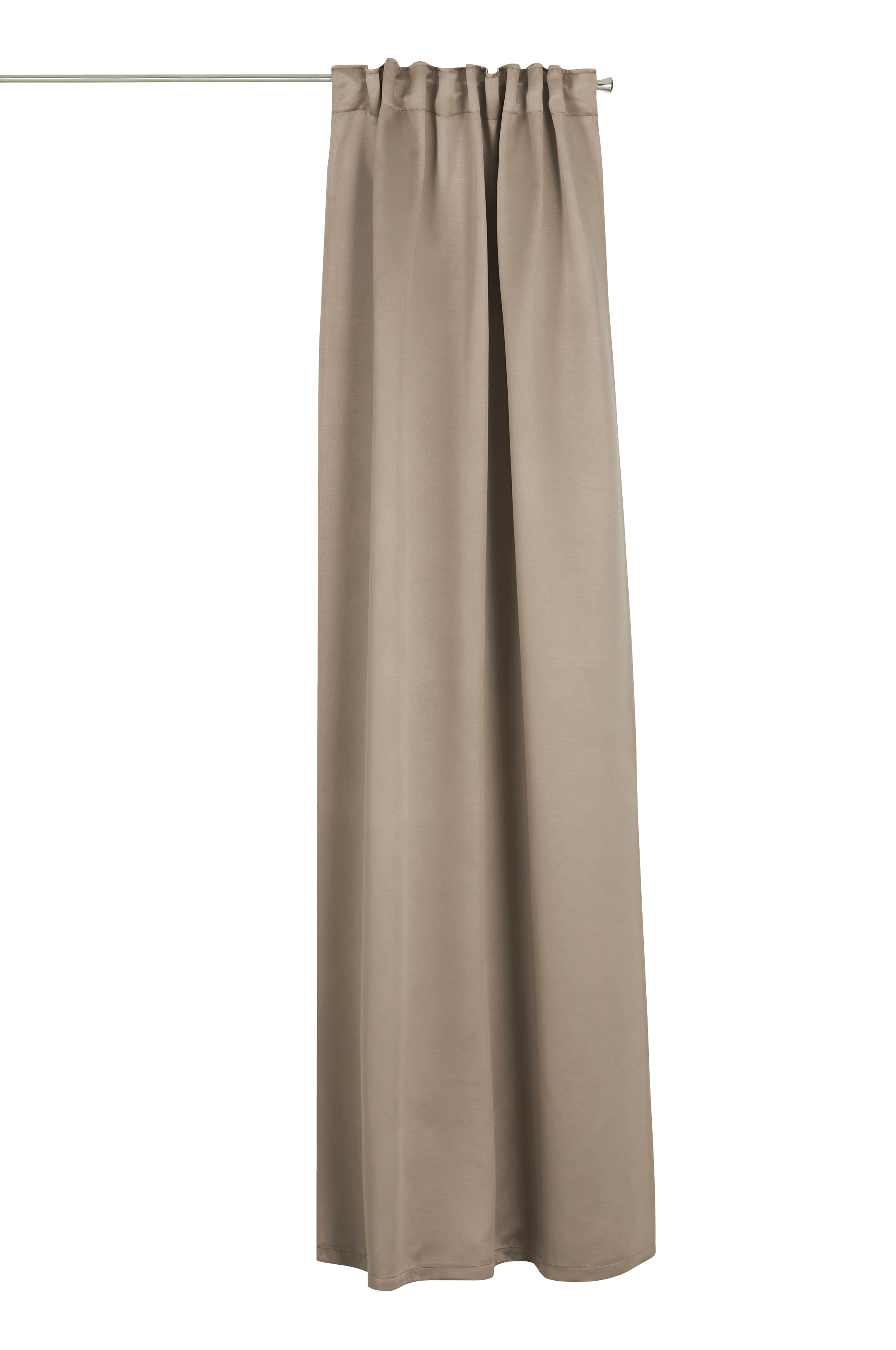 Mörkläggningsgardin i twill med fin lyster. Ett vävt mellanlager med invävda svarta trådar gör att gardinen skärmar av ljuset. Gardinen har multiband, som gör att du antingen kan trä den direkt på en gardinstång eller använda ringar och nålkrokar (ej fingerkrokar). Snören i rynkbandet gör att du lätt kan skapa jämna, fina veck. Säljs i 1-styck.