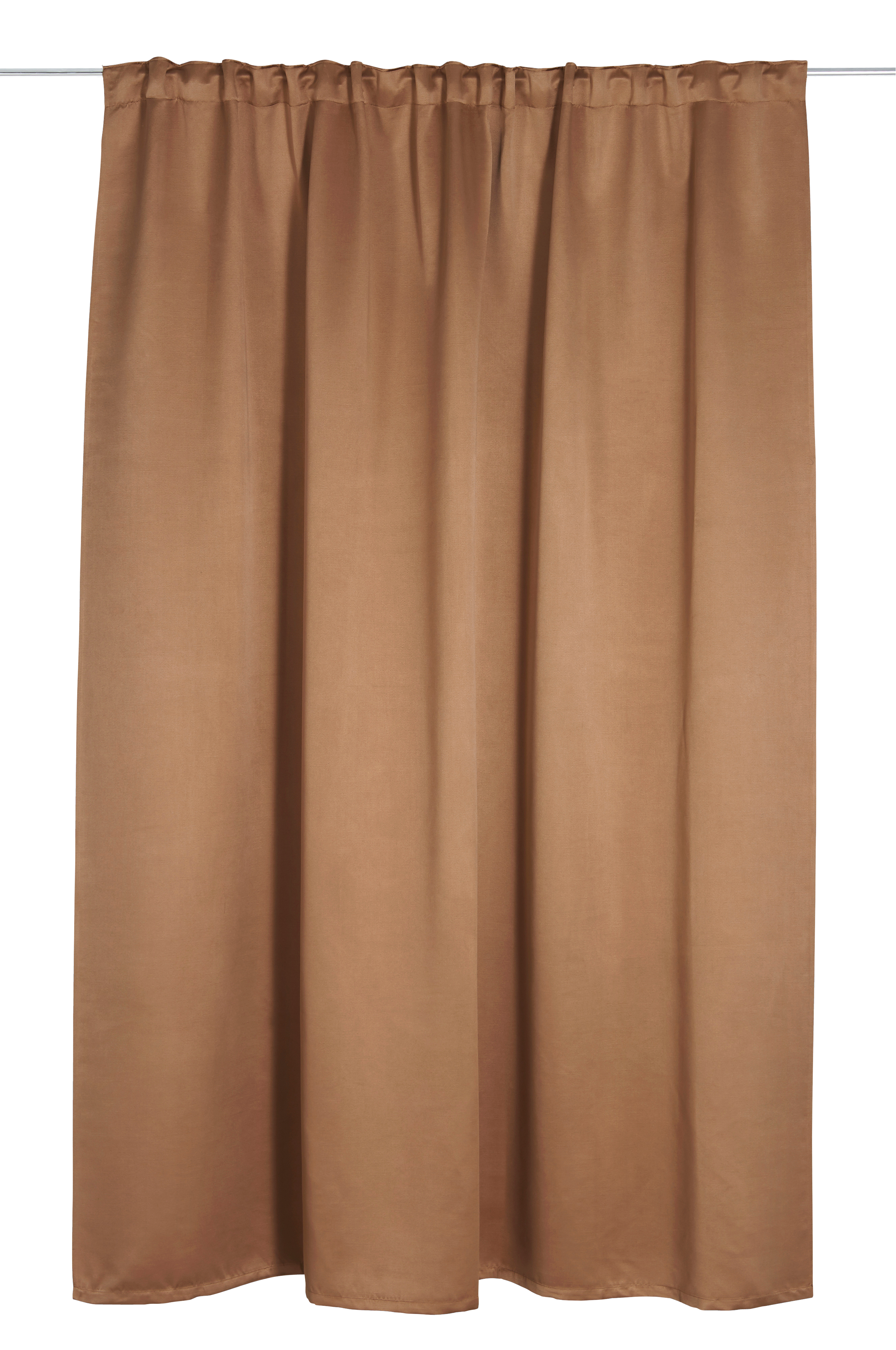 Mörkläggningsgardin i twill med fin lyster. Ett vävt mellanlager med invävda svarta trådar gör att gardinen skärmar av ljuset. Gardinen har multiband, som gör att du antingen kan trä den direkt på en gardinstång eller använda ringar och nålkrokar (ej fingerkrokar). Snören i rynkbandet gör att du lätt kan skapa jämna, fina veck. Säljs i 1-styck.