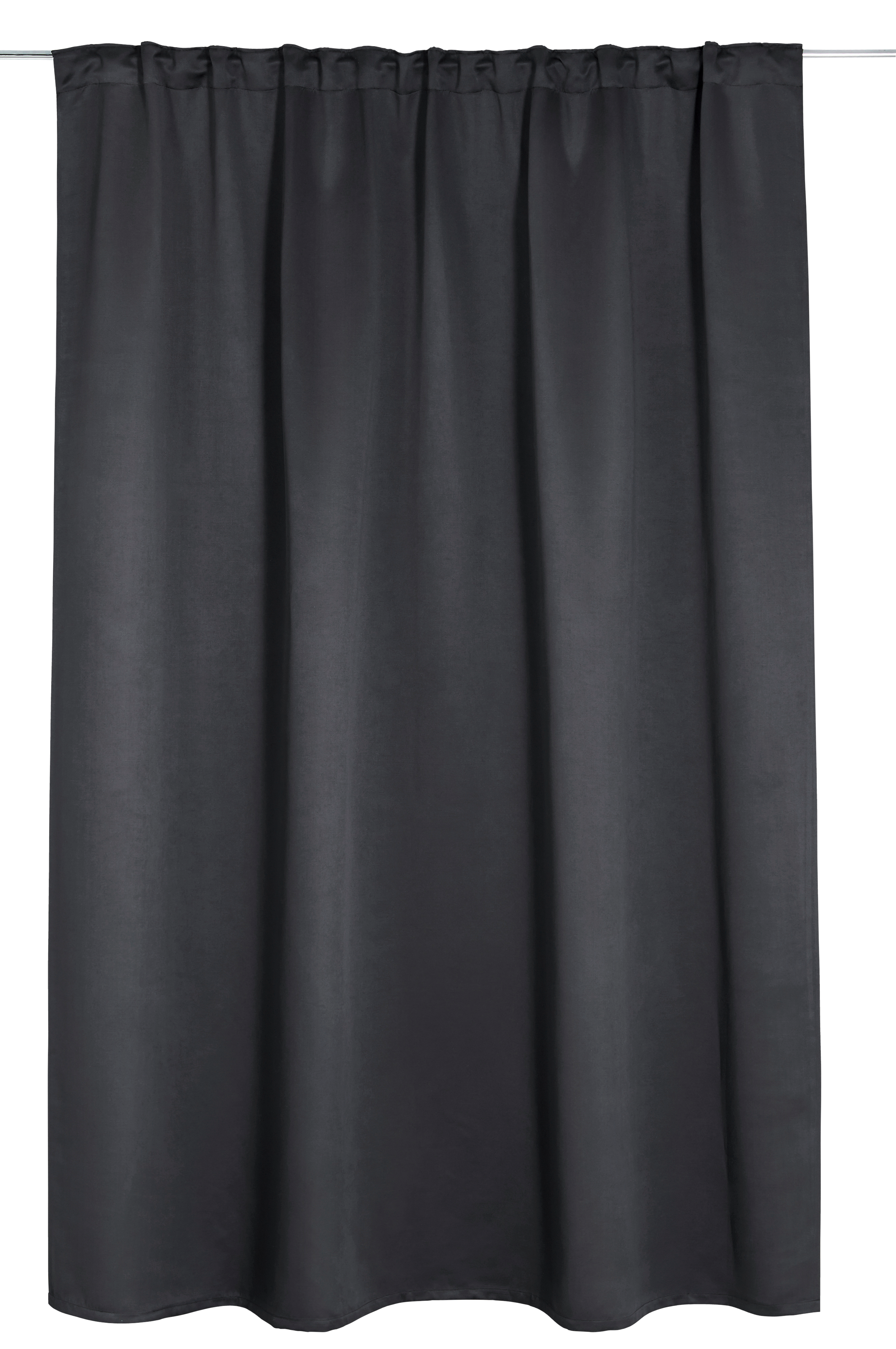 Mörkläggningsgardin i twill med fin lyster. Ett vävt mellanlager med invävda svarta trådar gör att gardinen skärmar av ljuset. Gardinen har multiband, som gör att du antingen kan trä den direkt på en gardinstång eller använda ringar och nålkrokar (ej fingerkrokar). Snören i rynkbandet gör att du lätt kan skapa jämna, fina veck. Bredd 270 cm. Längd 300 cm. Säljs i 1-styck.