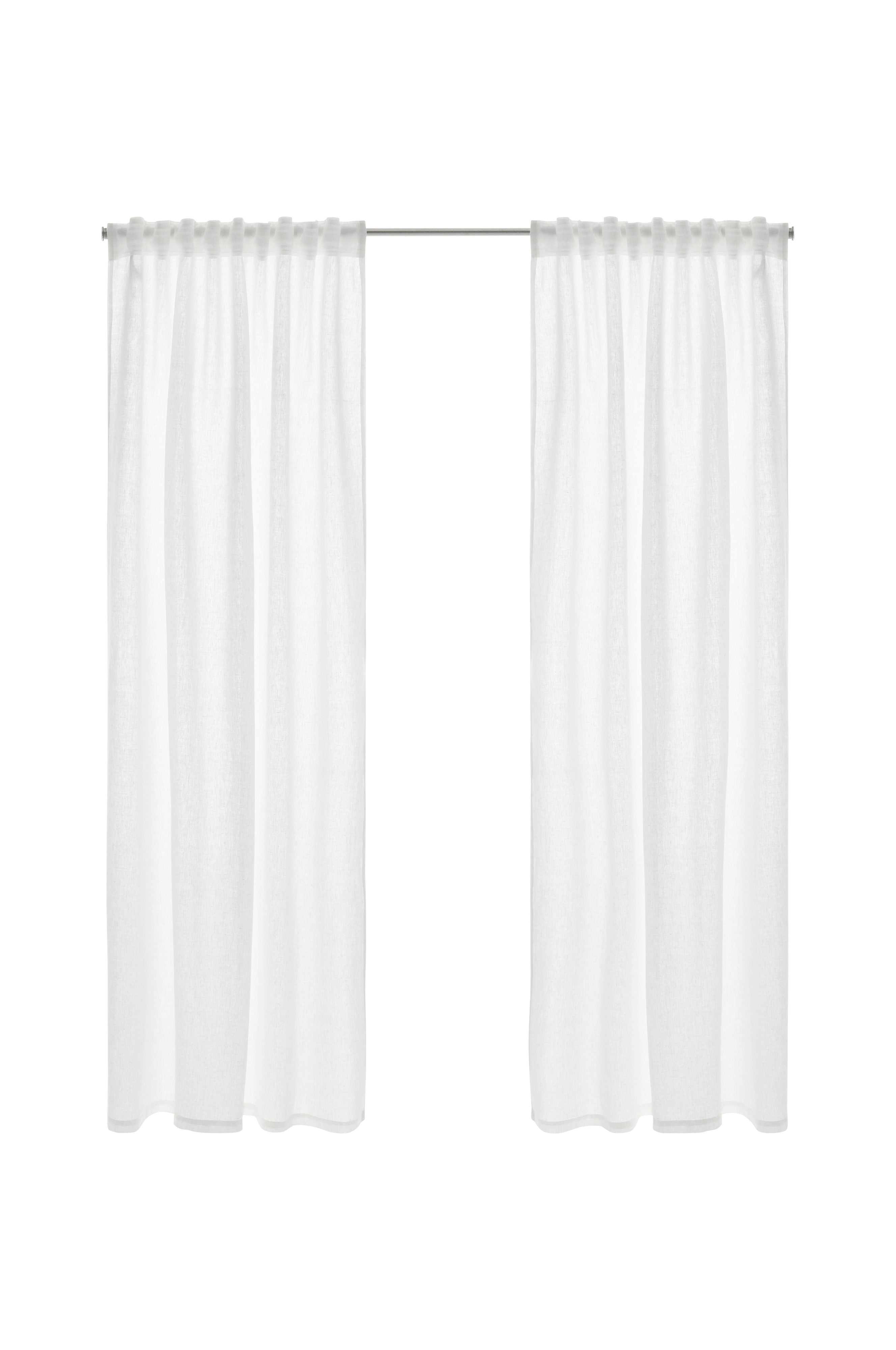 Två multibandslängder av lin. Multibanden gör att du antingen kan hänga gardinerna direkt på en gardinstång genom de gömda hällorna eller använda ringar eller nålkrokar (ej fingerkrokar). Snören i rynkbanden gör att du lätt kan skapa jämna, fina veck. Bredd 135 cm. Tre längder: 220, 250 och 300 cm.