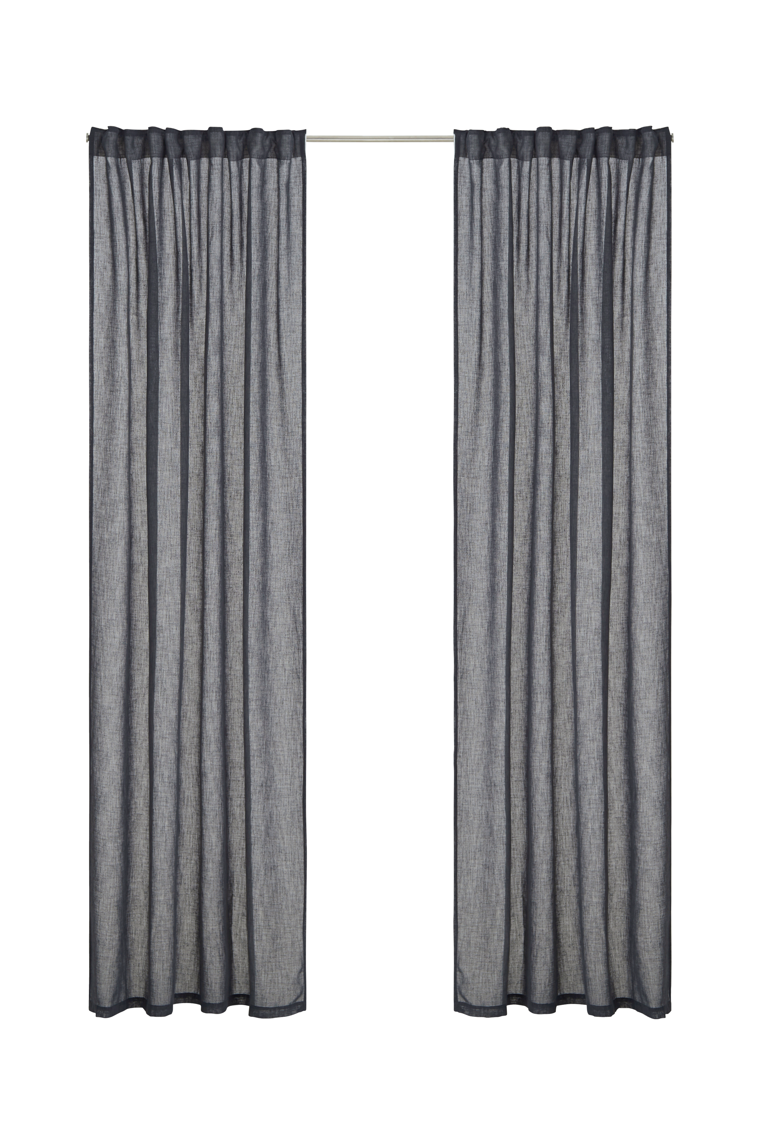 Två multibandlängder i glesvävd, återvunnen polyester med lätt struktur. Multibanden gör att du antingen kan hänga gardinerna direkt på en gardinstång genom hällorna eller använda rynkbandskrokar, nålkrokar eller fingerkrokar. Snören i rynkbandet gör att du lätt kan skapa jämna, fina veck. Bredd 135 cm. Tre längder: 220, 250 och 300 cm.