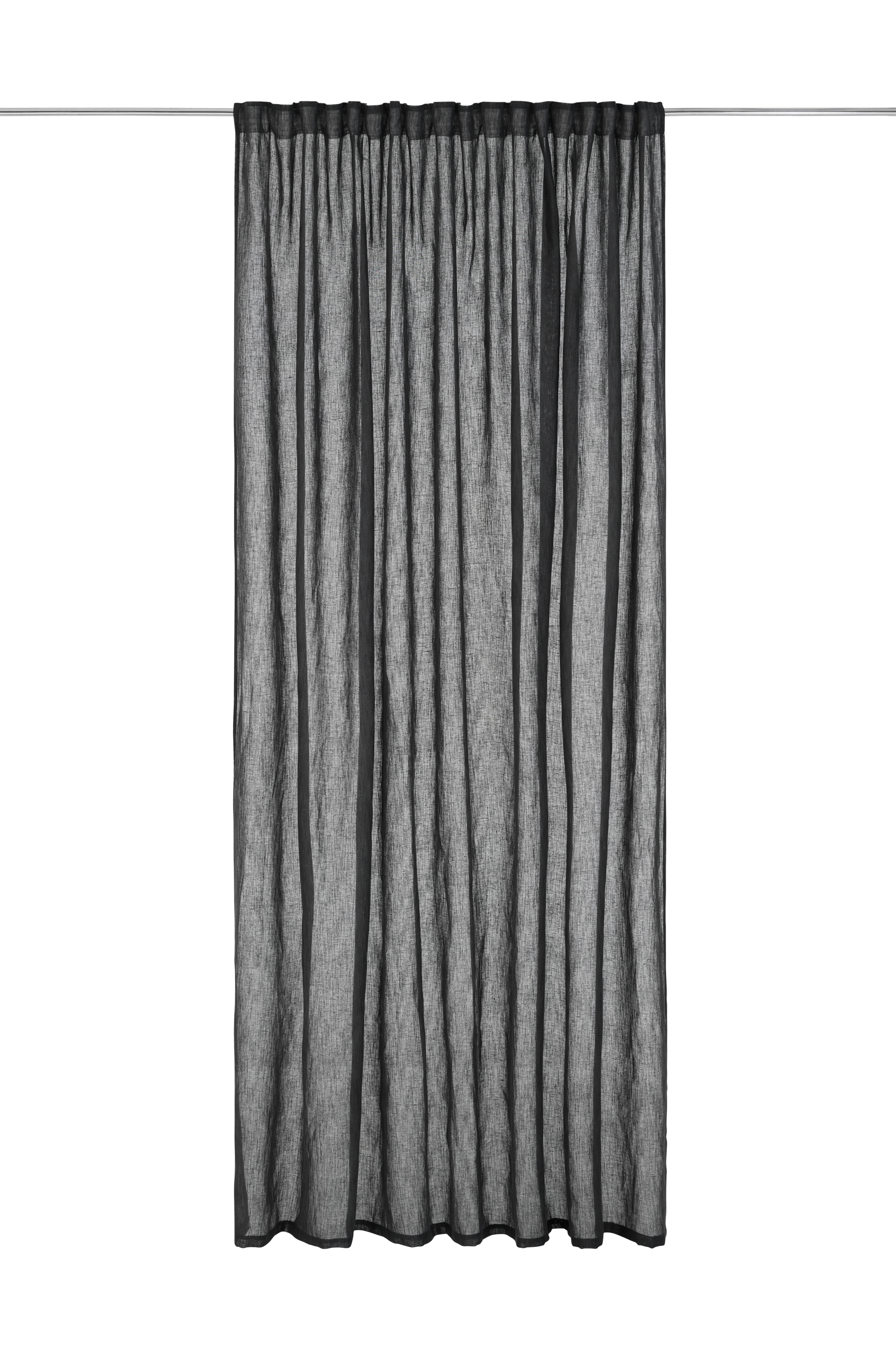 Multibandslängd i en blandning av återvunnen polyester och lin. Glesvävd kvalitet med fin, levande linnestruktur. Multibandet gör att du antingen kan hänga gardinen direkt på en gardinstång genom de gömda hällorna eller använda ringar, nålkrokar eller fingerkrokar. Snören i rynkbandet gör att du lätt kan skapa jämna, fina veck. Stl 280x300 cm. Säljs i 1-styck.