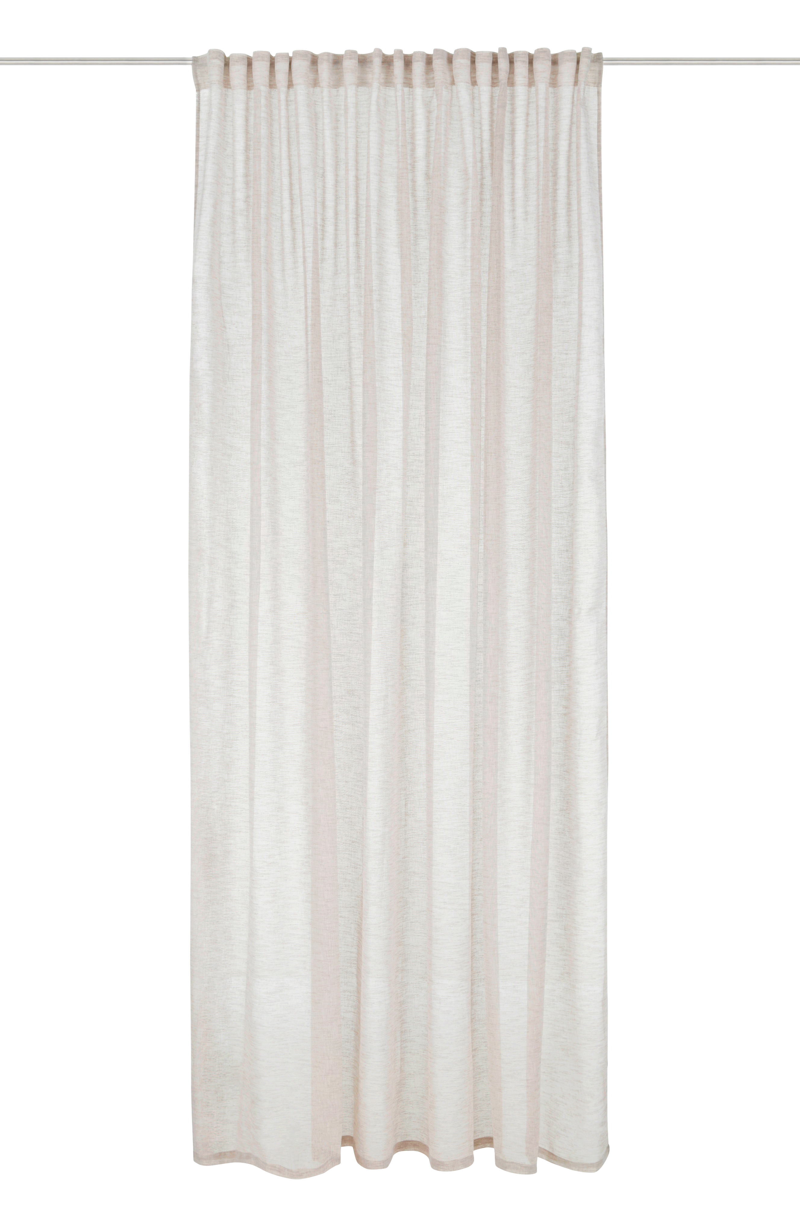 Multibandslängd i glesvävd polyester med melangeeffekt. Multibandet gör att du antingen kan hänga gardinen direkt på en gardinstång genom de gömda hällorna eller använda ringar, nålkrokar eller fingerkrokar. Snöre i rynkbandet gör att du lätt kan skapa jämna, fina veck. Stl 280x300 cm. Gardinen säljs i 1-styck.