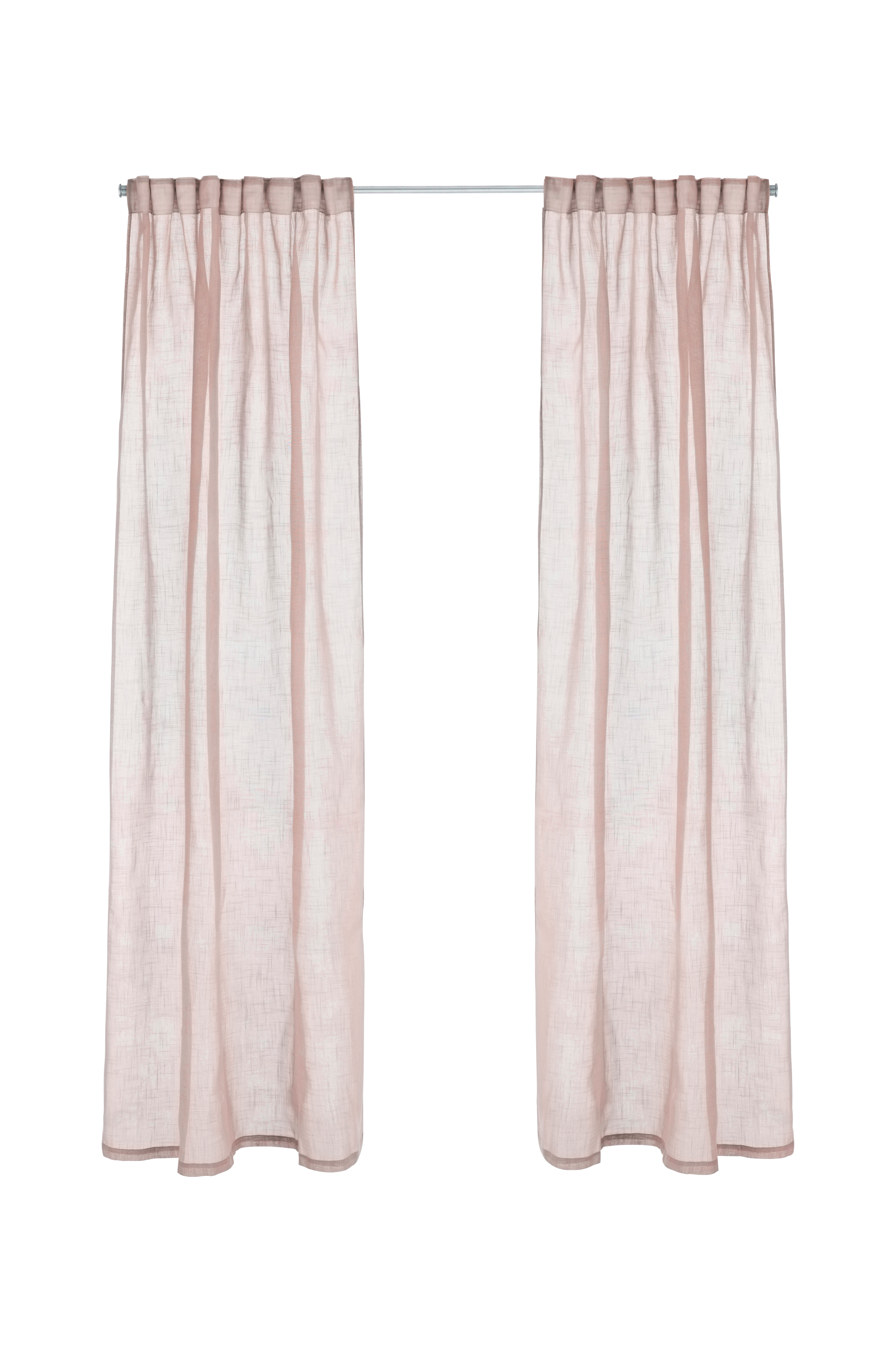 Två multibandslängder i skir kvalitet med lätt struktur i linnelook. Multibanden gör att du antingen kan hänga gardinerna direkt på en gardinstång genom de gömda hällorna eller använda ringar, nålkrokar, rynkbandskrokar eller fingerkrokar. Snören i rynkbandet gör att du lätt kan skapa jämna, fina veck. Bredd 134 cm. Tre längder: 220, 250 och 300 cm.