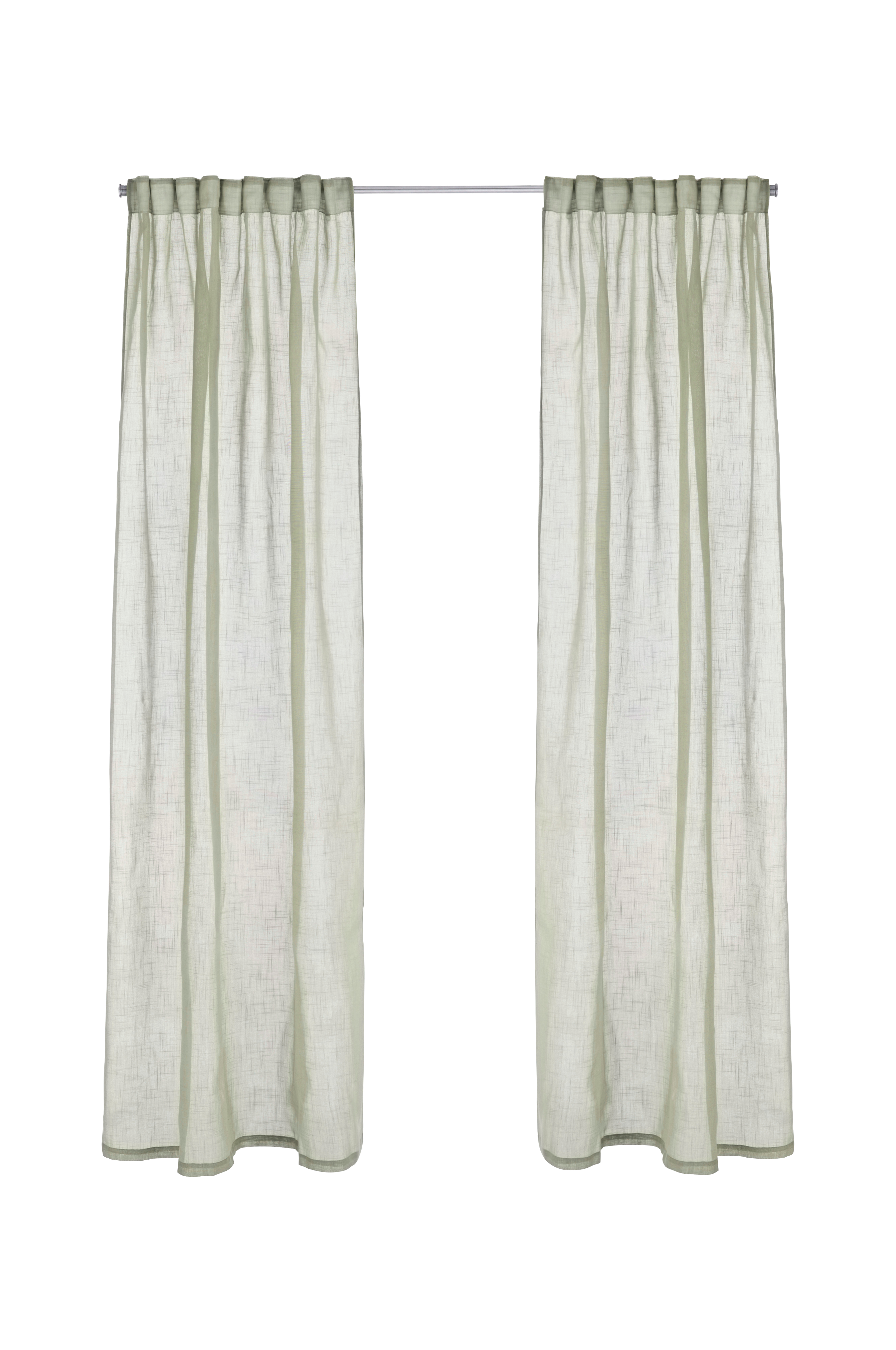 Två multibandslängder i skir kvalitet med lätt struktur i linnelook. Multibanden gör att du antingen kan hänga gardinerna direkt på en gardinstång genom de gömda hällorna eller använda ringar, nålkrokar, rynkbandskrokar eller fingerkrokar. Snören i rynkbandet gör att du lätt kan skapa jämna, fina veck. Bredd 134 cm. Tre längder: 220, 250 och 300 cm.