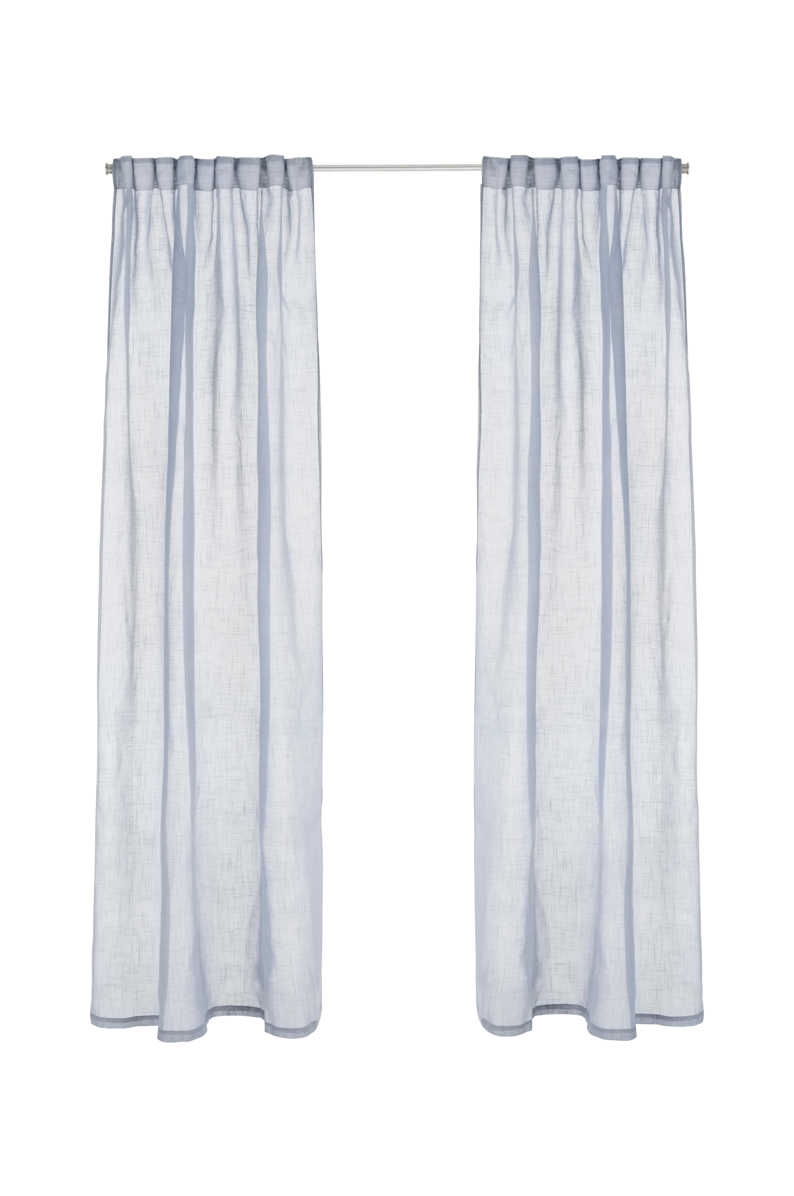 Två multibandslängder i skir kvalitet med lätt struktur i linnelook. Multibanden gör att du antingen kan hänga gardinerna direkt på en gardinstång genom de gömda hällorna eller använda ringar, nålkrokar, rynkbandskrokar eller fingerkrokar. Snören i rynkbandet gör att du lätt kan skapa jämna, fina veck. Bredd 134 cm. Tre längder: 220, 250 och 300 cm.