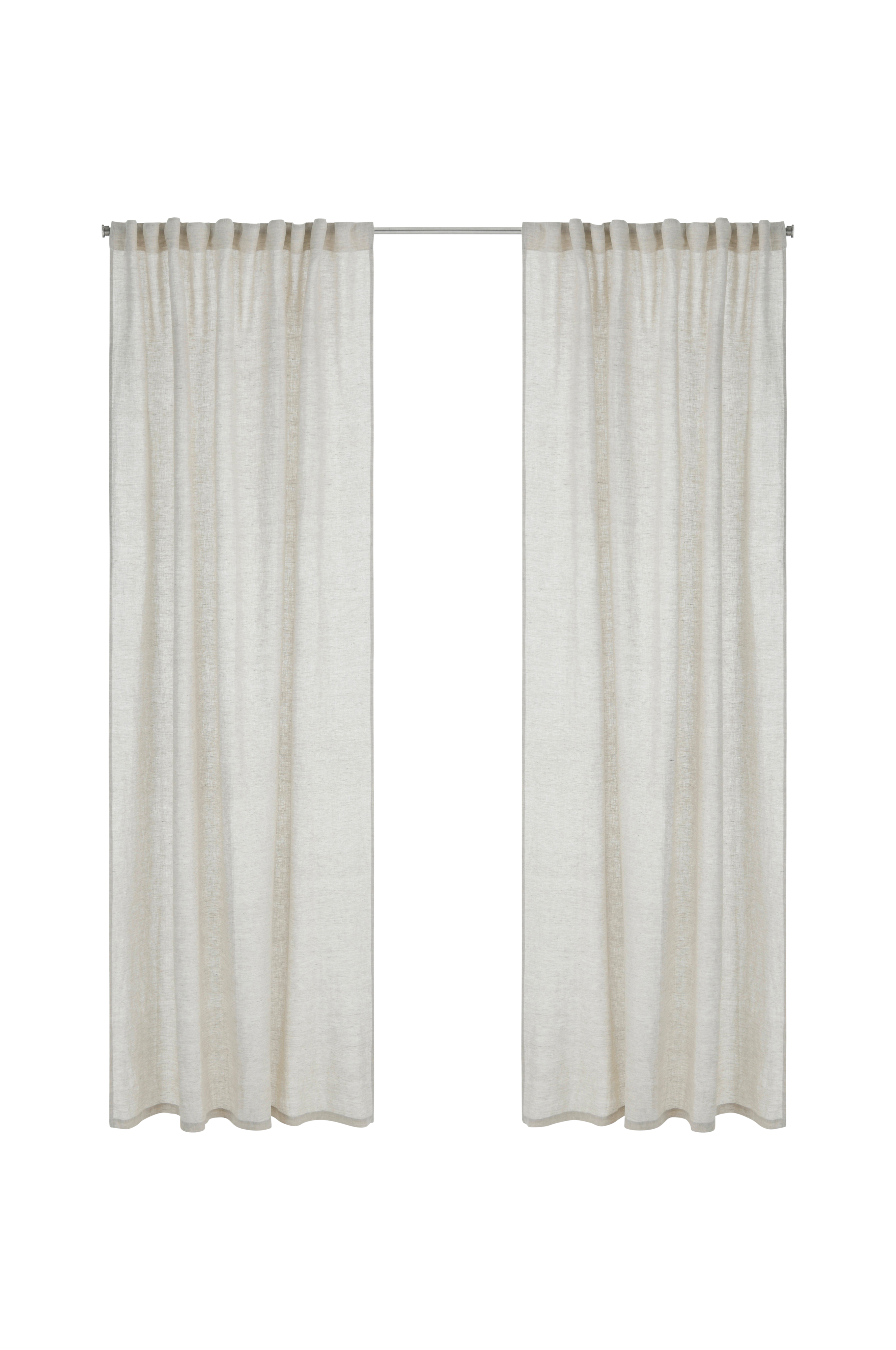 Två multibandslängder i tvättat lin med vacker struktur. Multibanden gör att du antingen kan hänga gardinerna direkt på en gardinstång genom de gömda hällorna eller använda ringar, nålkrokar eller fingerkrokar. Snören i rynkbandet gör att du lätt kan skapa jämna, fina veck. Kan även användas med rynkbandskrokar. Bredd 135 cm. Finns i flera längder.