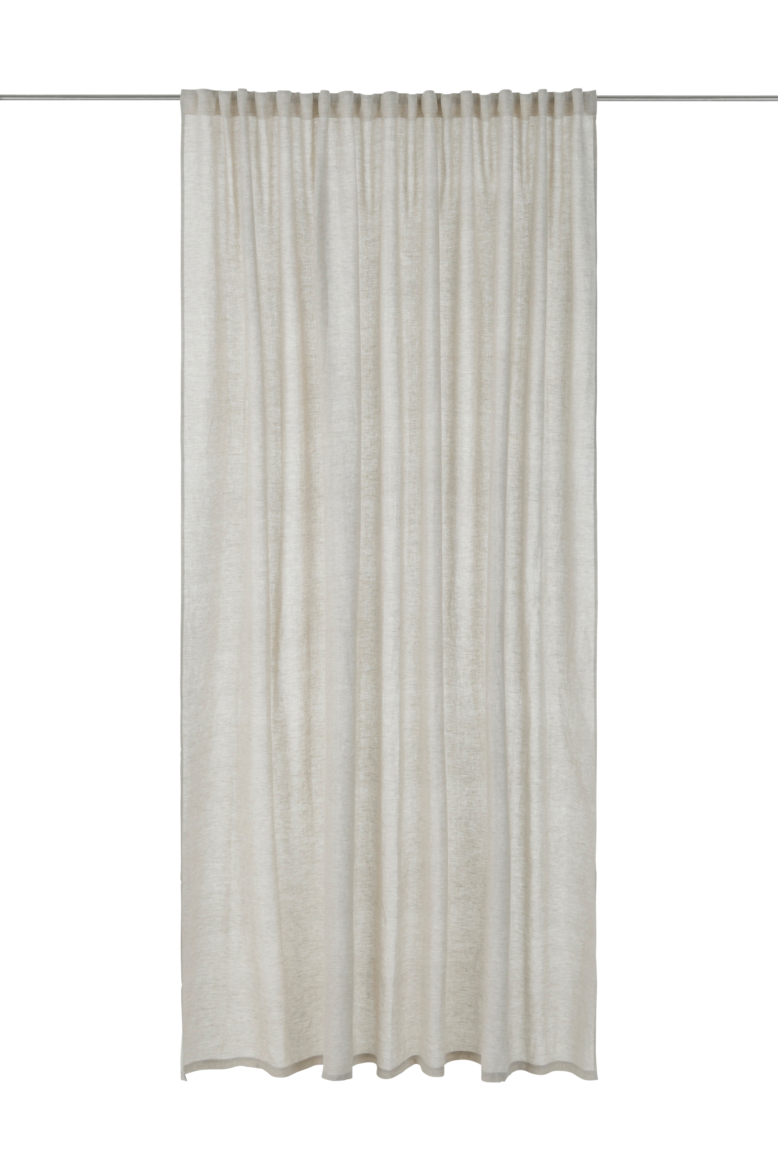 En extra bred multibandslängd i tvättat lin med vacker struktur. Multibandet gör att du antingen kan hänga gardinen direkt på en gardinstång genom de gömda hällorna eller använda ringar, nålkrokar eller fingerkrokar. Snören i rynkbandet gör att du lätt kan skapa jämna, fina veck. Kan även användas med rynkbandskrok. Bredd: 270 cm. Längd: 300 cm.