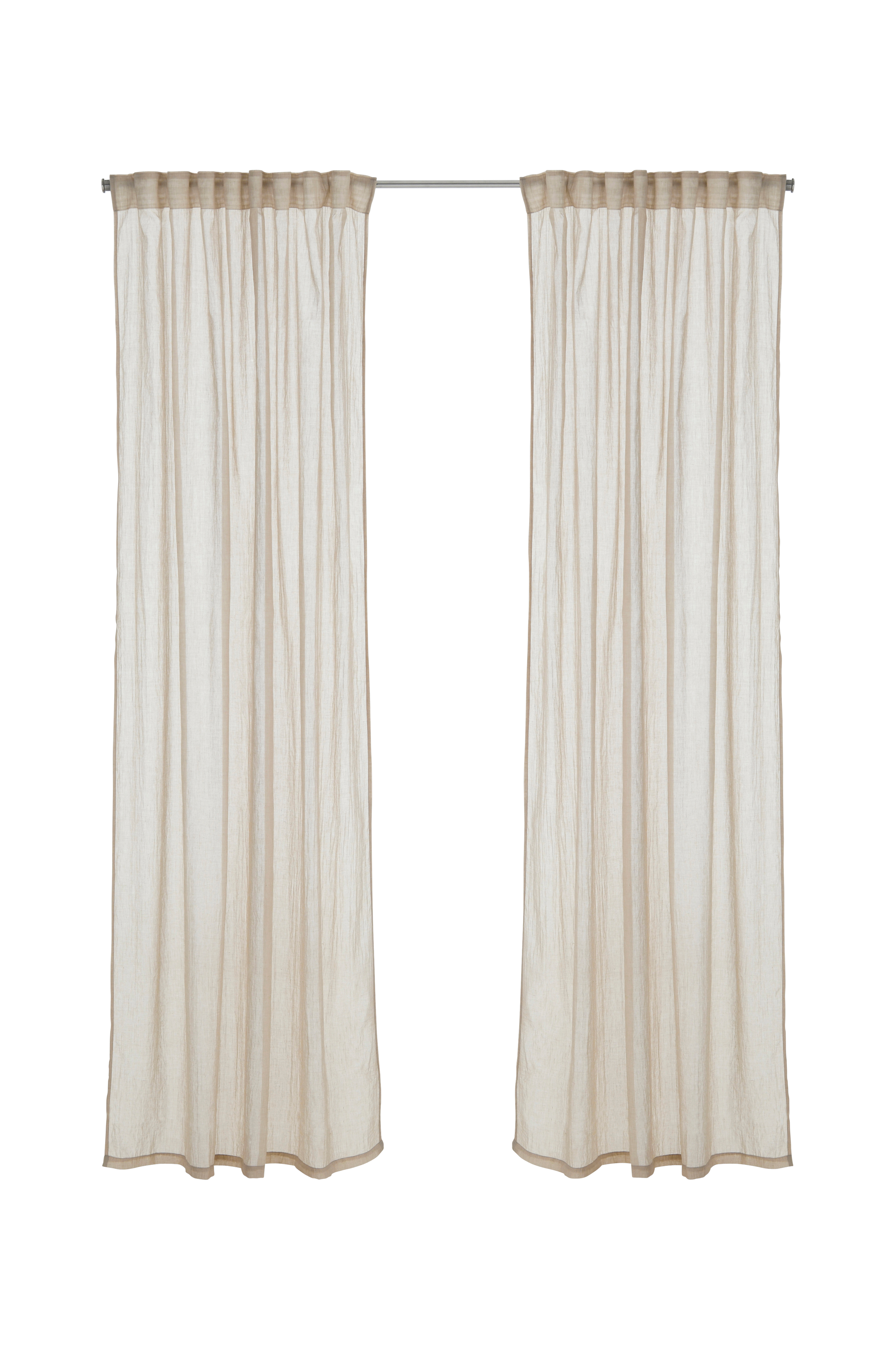 Två multibandslängder i tunn, halvtransparent voile. Multibanden gör att du antingen kan hänga gardinerna direkt på en gardinstång genom de gömda hällorna eller använda ringar, nålkrokar eller fingerkrokar. Snören i rynkbanden gör att du lätt kan skapa jämna, fina veck. Bredd 130 cm.
