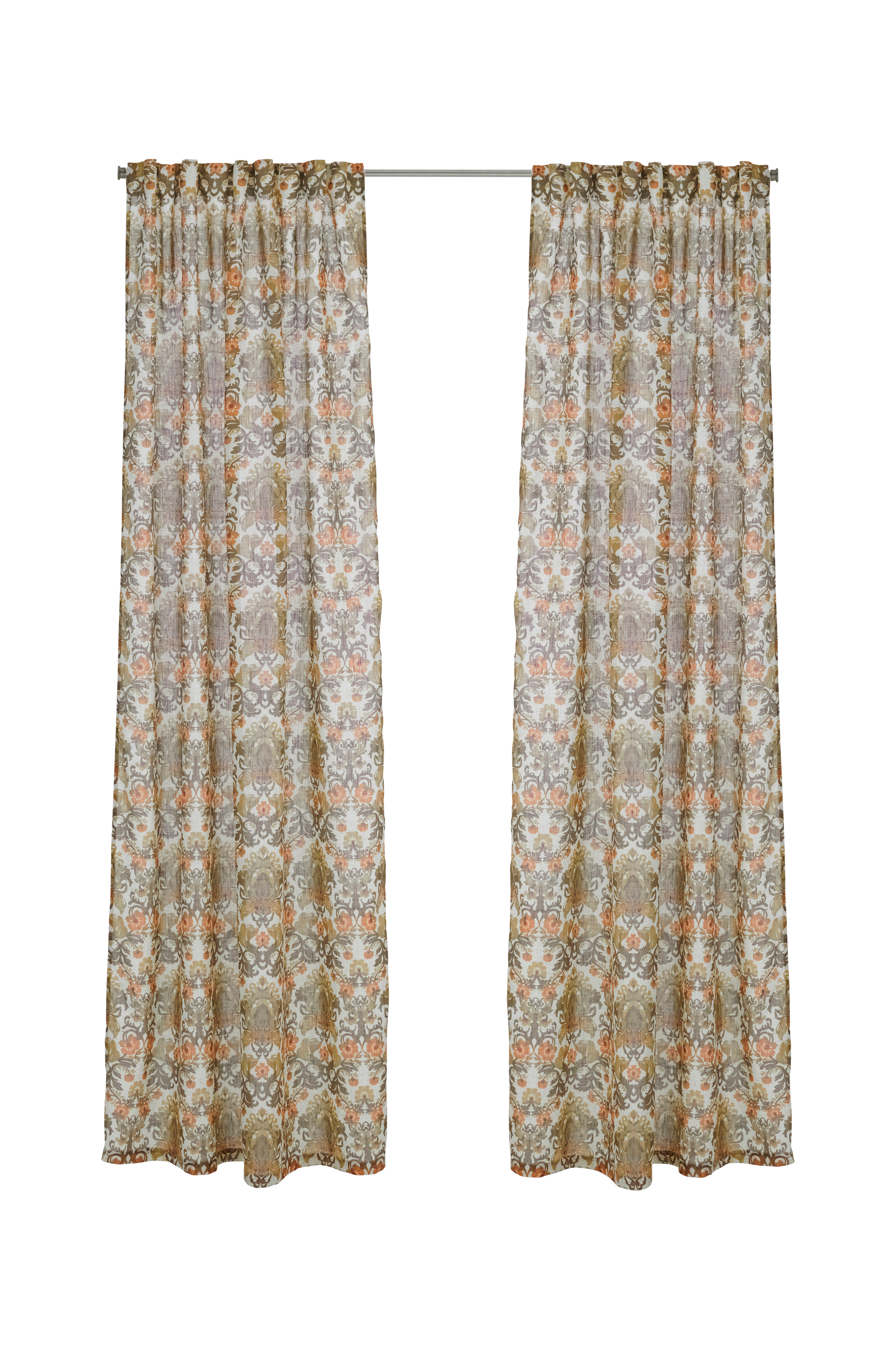 Två multibandslängder i linnemix med fin struktur i tyget. Tryckt mönster. Multibanden gör att du antingen kan hänga gardinerna direkt på en gardinstång genom de gömda hällorna eller använda ringar, nålkrokar eller fingerkrokar. Snören i rynkbandet gör att du lätt kan skapa jämna, fina veck.