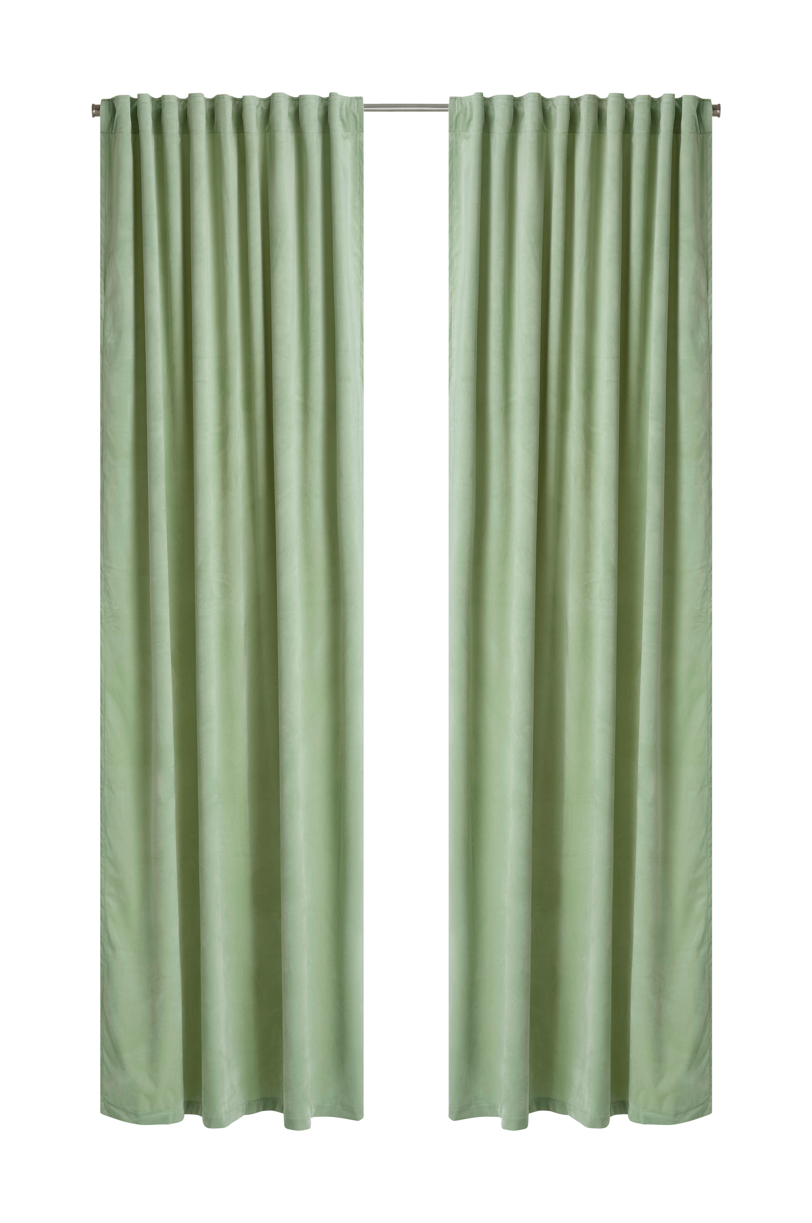 Två multibandslängder i sammet med fin lyster och mjukt fall. Multibanden gör att du antingen kan hänga gardinerna direkt på en gardinstång genom de gömda hällorna eller använda ringar, nålkrokar eller fingerkrokar. Snören i rynkbanden gör att du lätt kan skapa jämna, fina veck. Bredd 140 cm. Tre längder: 220, 250 och 300 cm.