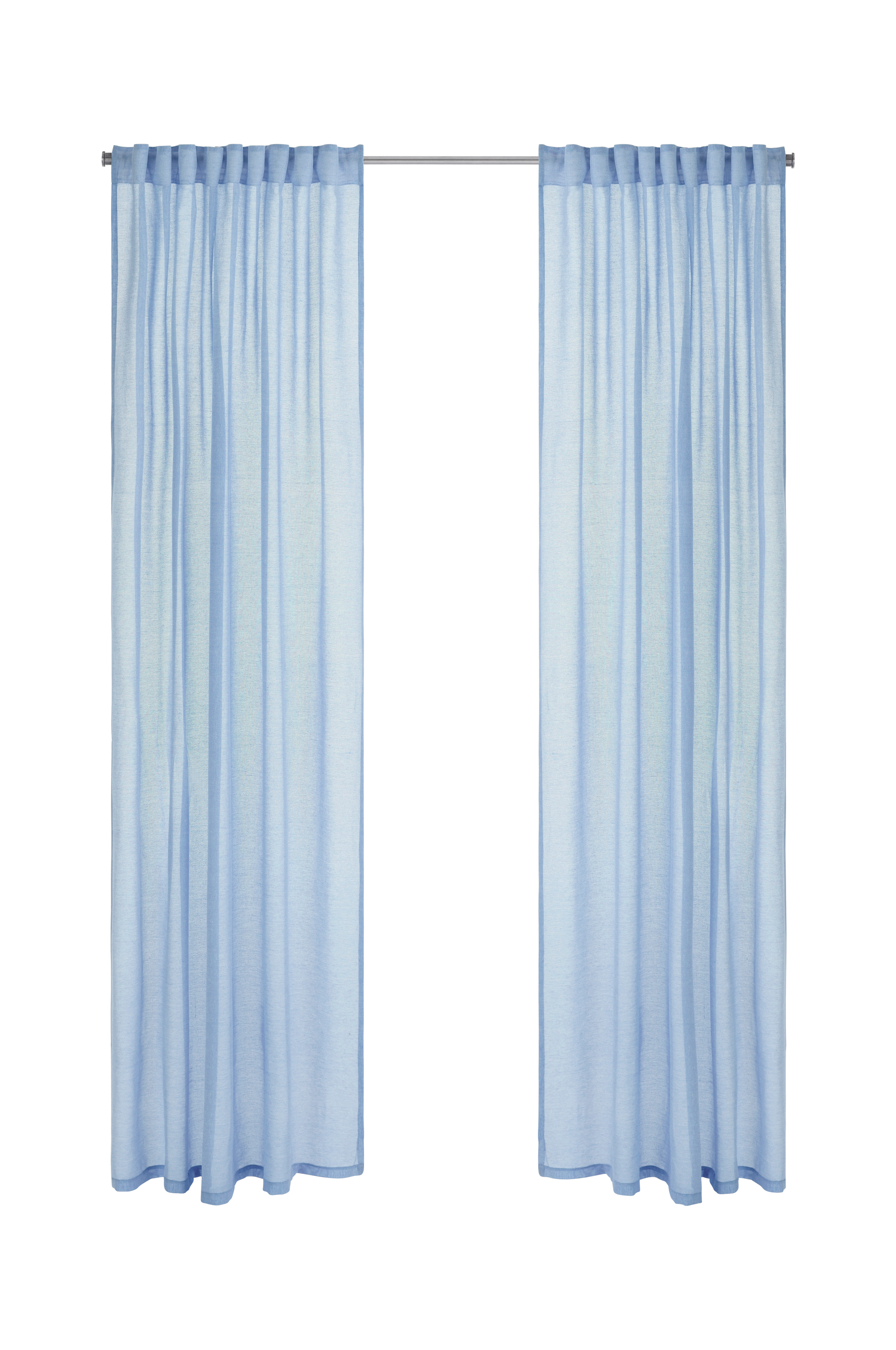 Två multibandslängder i glesvävd kvalitet med melerad effekt, gjorda av återvunnen bomull. Multibanden gör att du antingen kan hänga gardinerna direkt på en gardinstång eller använda ringar och nålkrokar (ej fingerkrokar). Snören i rynkbanden gör att du lätt kan skapa jämna, fina veck. Bredd 145 cm. Finns i flera olika längder.