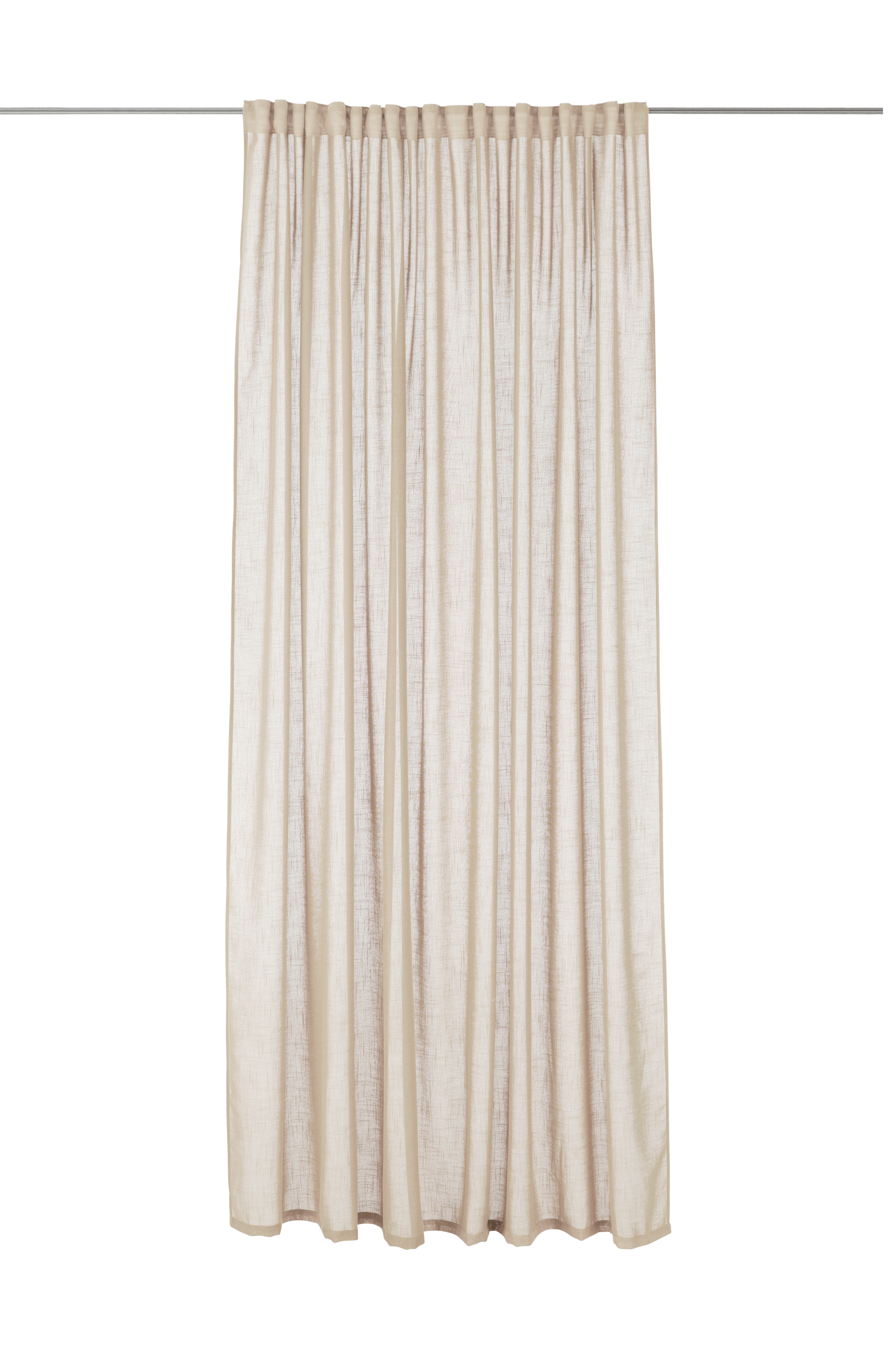 Extra bred multibandslängd i lite grövre linnelook av mjuk, återvunnen polyester. Multibandet gör att du antingen kan hänga gardinen direkt på en gardinstång genom de gömda hällorna eller använda ringar, nålkrokar eller fingerkrokar. Snören i rynkbandet gör att du lätt kan skapa jämna, fina veck. Säljs i 1-styck.