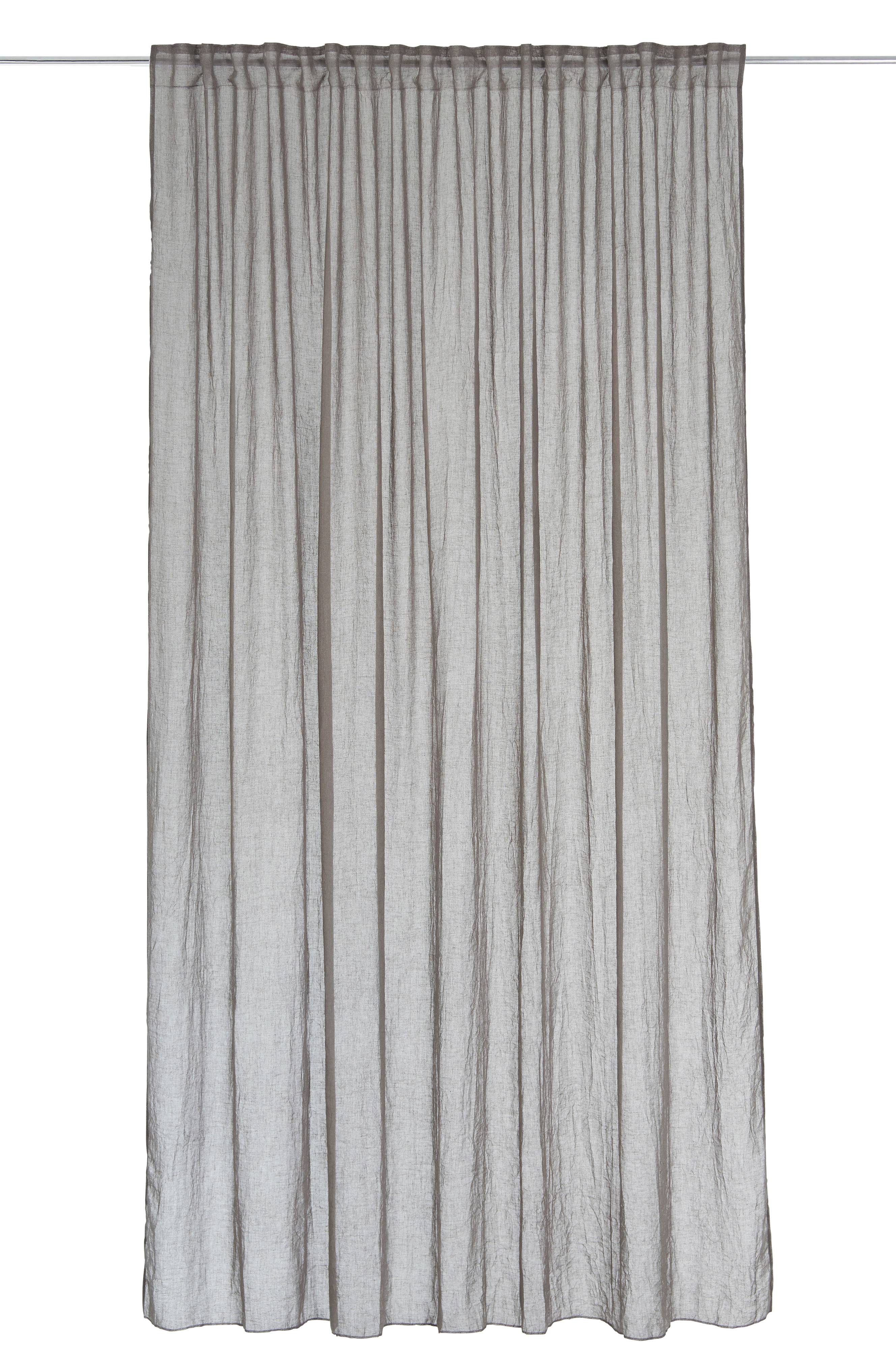 Multibandslängd i glesvävd, skir och lätt krinklad linvoile. Multibandet gör att du antingen kan hänga gardinen direkt på en gardinstång genom de gömda hällorna eller använda ringar och nålkrokar (ej fingerkrokar). Snöre i rynkbandet gör att du lätt kan skapa jämna, fina veck. Overlock på nederkanten. Bredd 260 cm. Längd 300 cm. Säljs i 1-styck.