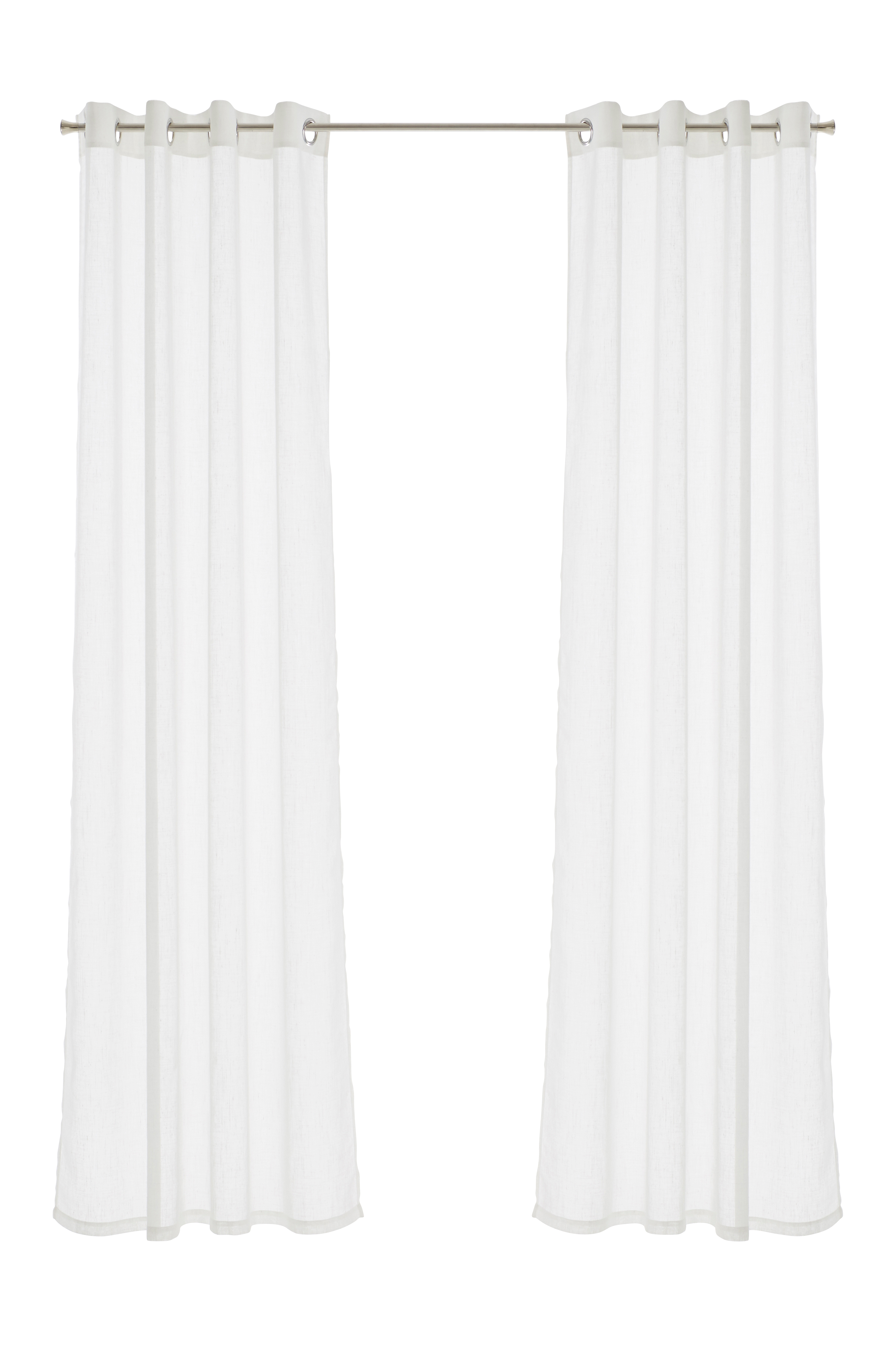 med öljetter i silverfärgad metall. Voile med linkänsla i 85% polyester och 15% lin med slubeffekt. Tvätt 30°. Bredd 140 cm. Finns i två längder: 220 & 250 cm.