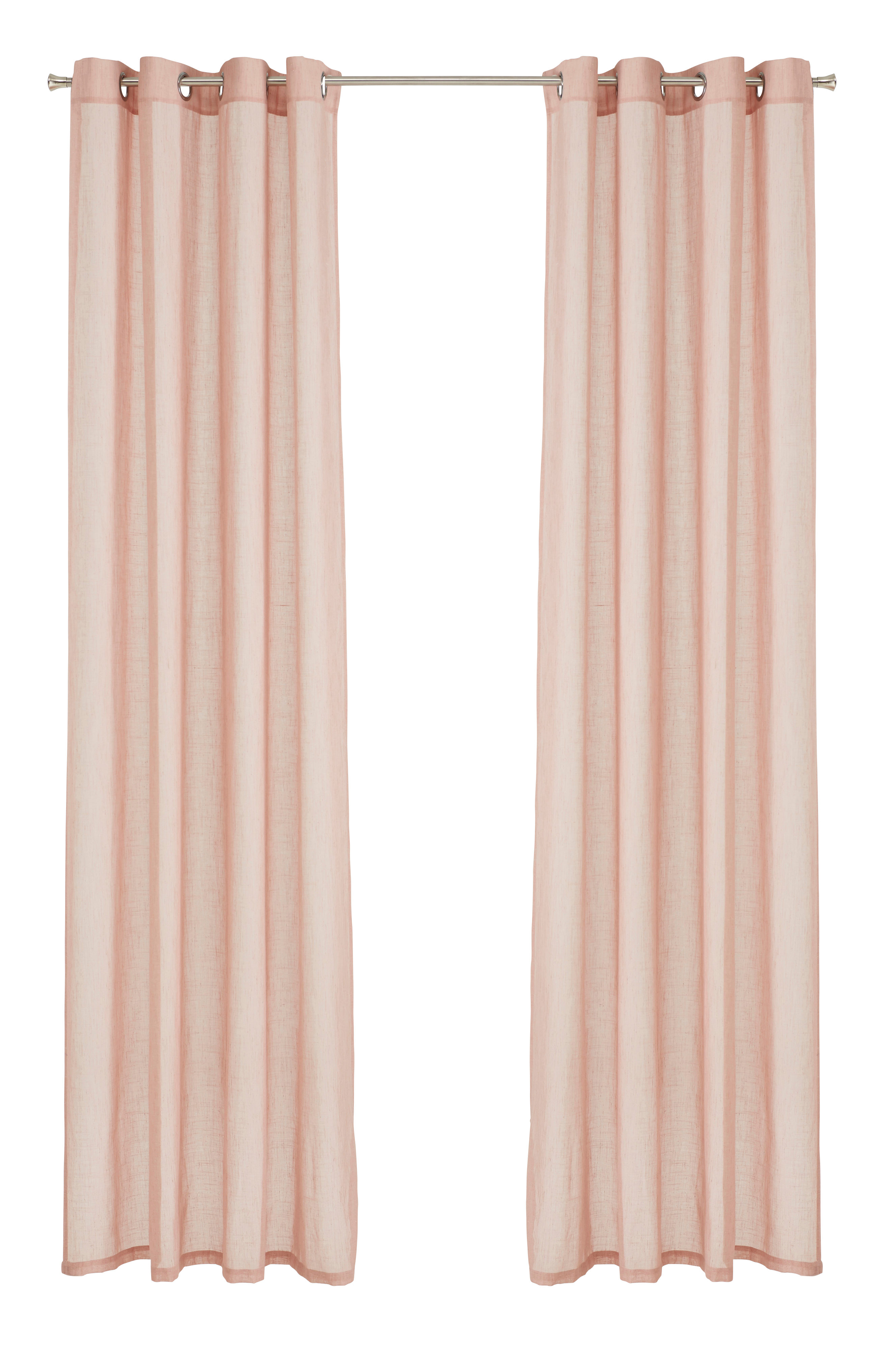 med öljetter i silverfärgad metall. Voile med linkänsla i 85% polyester och 15% lin med slubeffekt. Tvätt 30°. Bredd 140 cm. Finns i två längder: 220 & 250 cm.