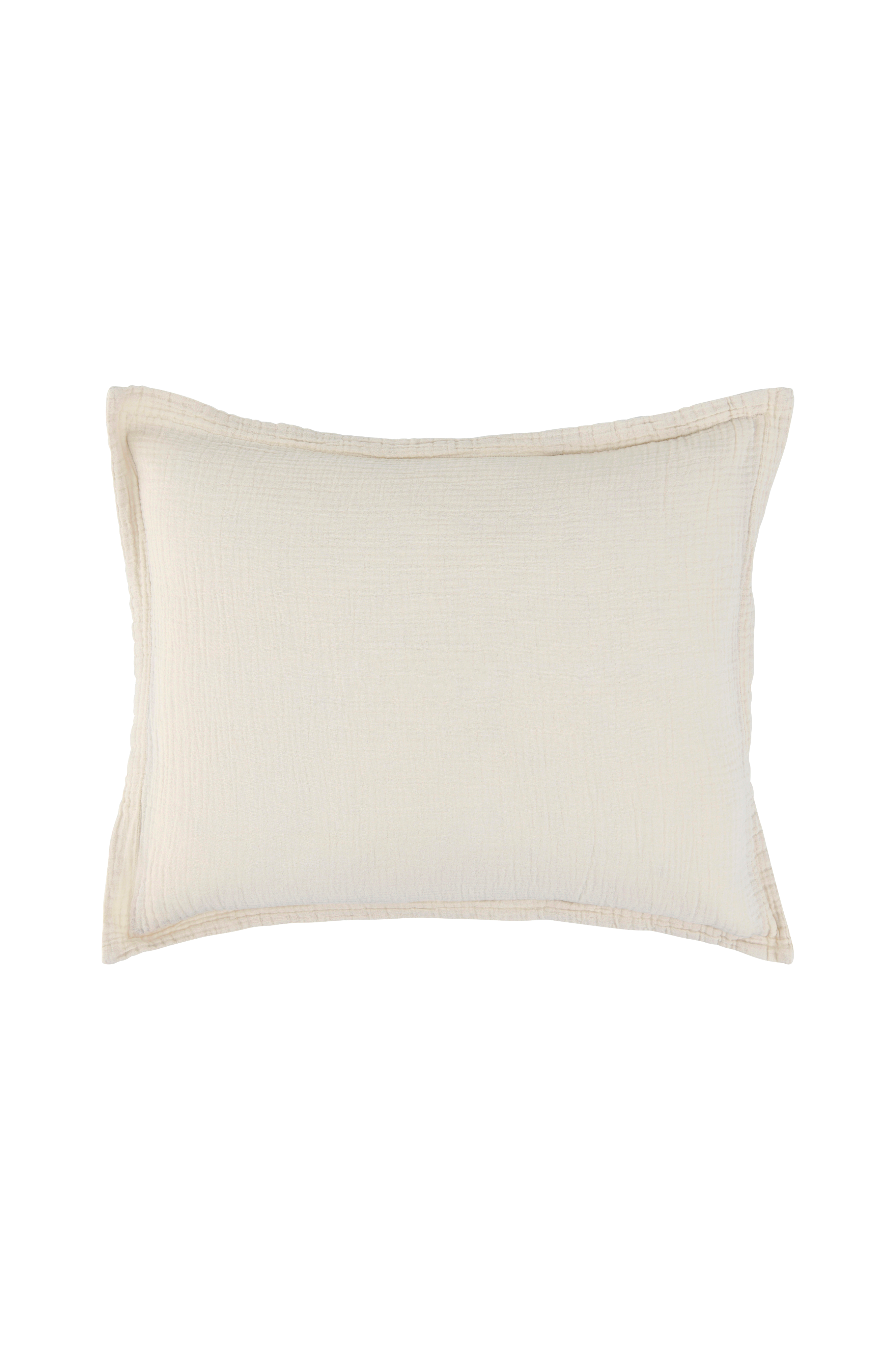 Örngott av tvättad, ekologisk bomullsmuslin i 2 lager. 2,5 cm vinge runt om. Trådtäthet: 230 TC.