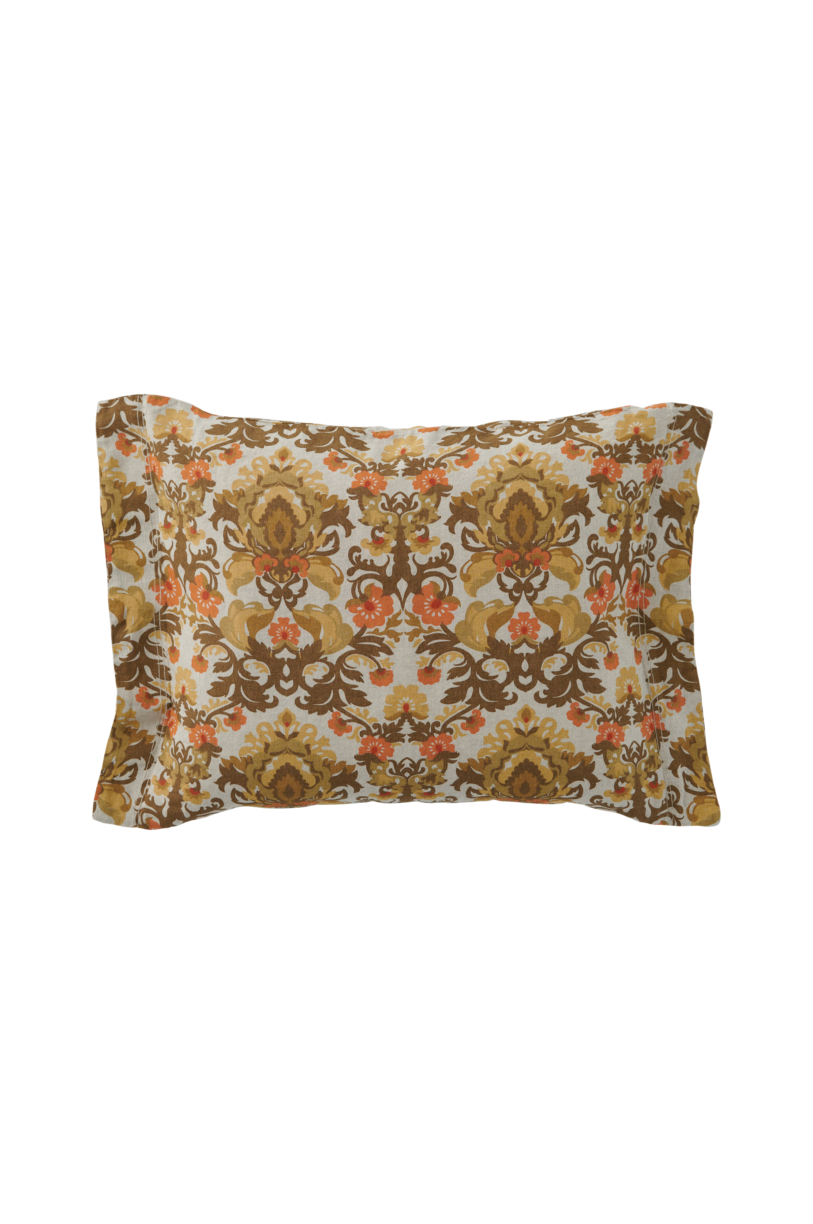 Örngott i vintagetvättad linnekvalitet av franskt lin med tryckt mönster på synlig linnebotten. Stl 50x60 cm + 5 cm vinge på kortsidorna.