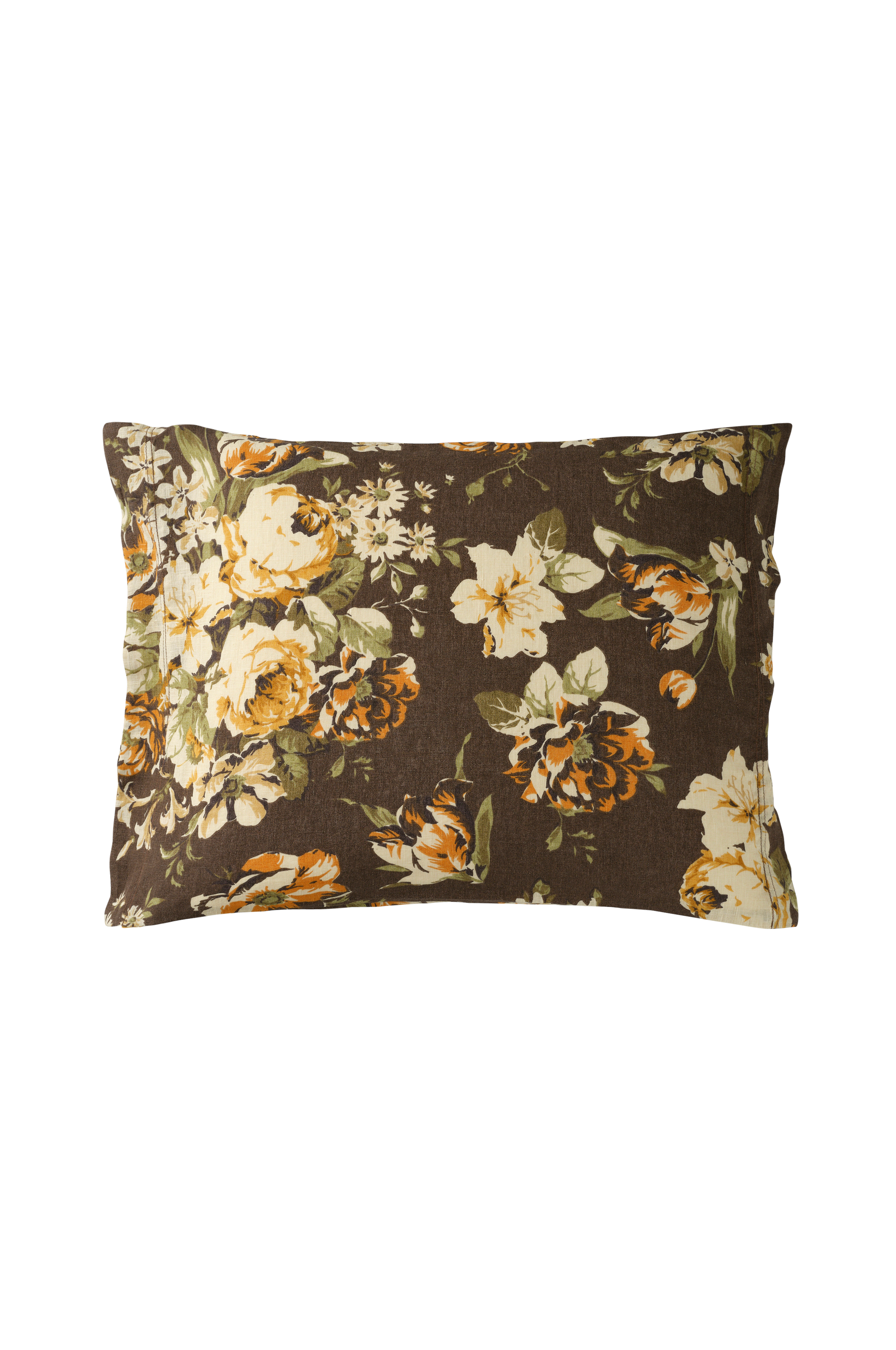 Örngott i vintagetvättad linnekvalitet av franskt lin med tryckt rosmönster på synlig linnebotten. Stl 50x60 cm + 5 cm vinge på kortsidorna.